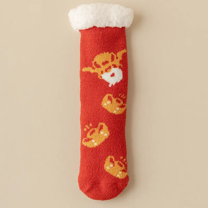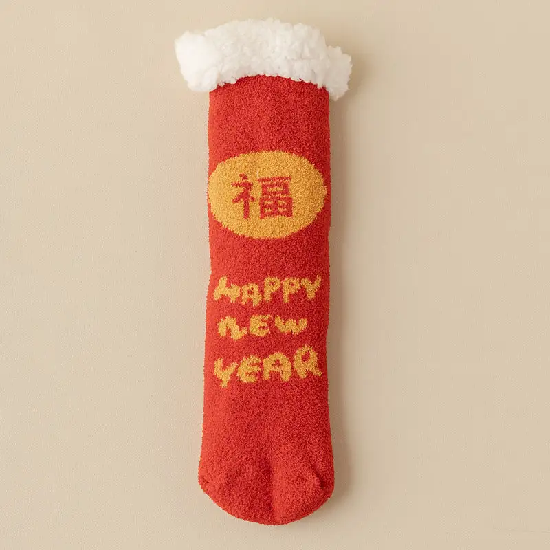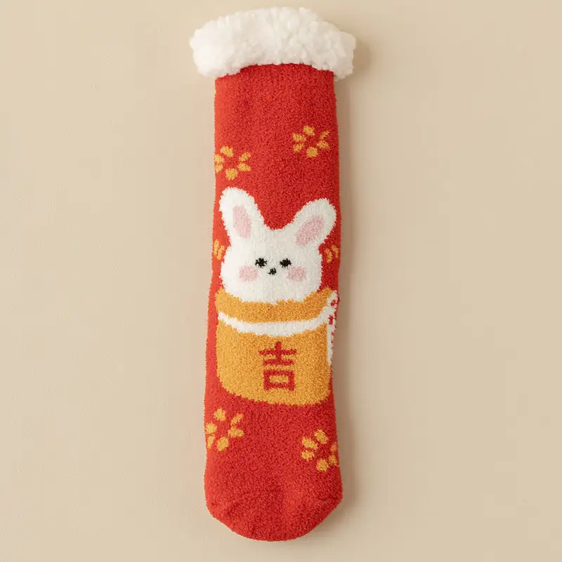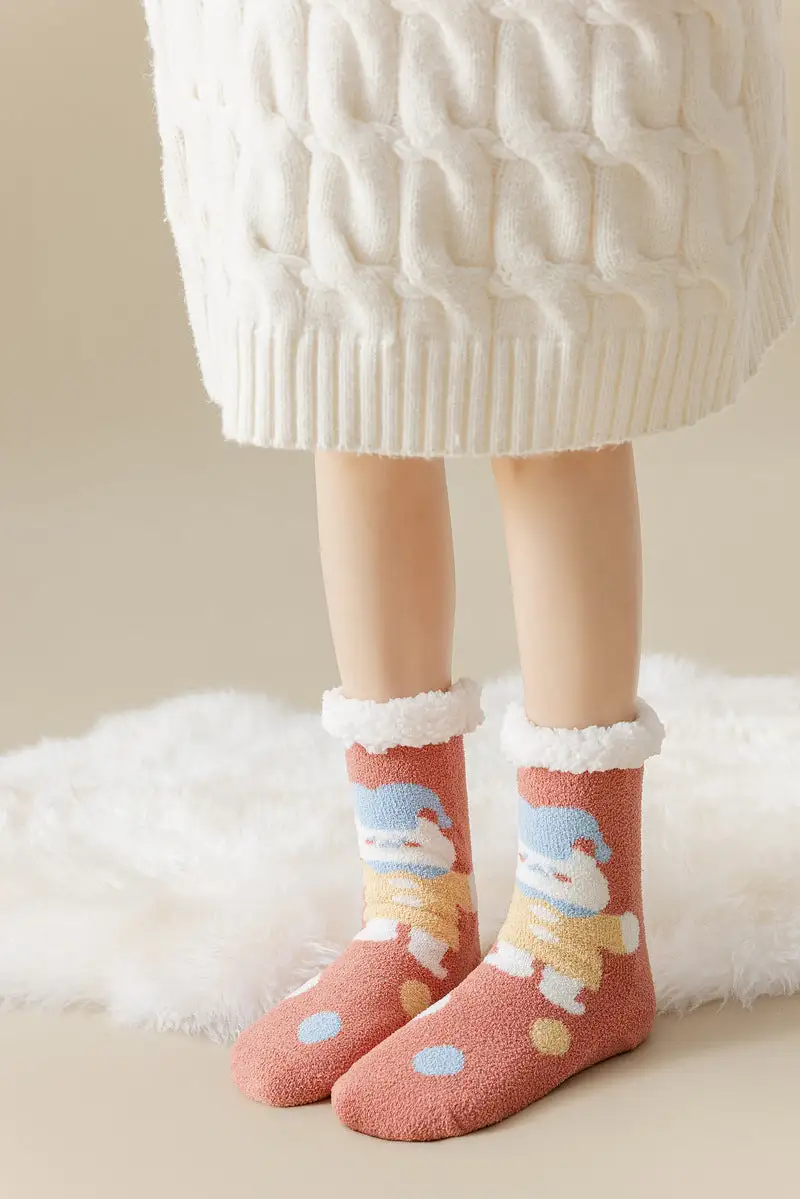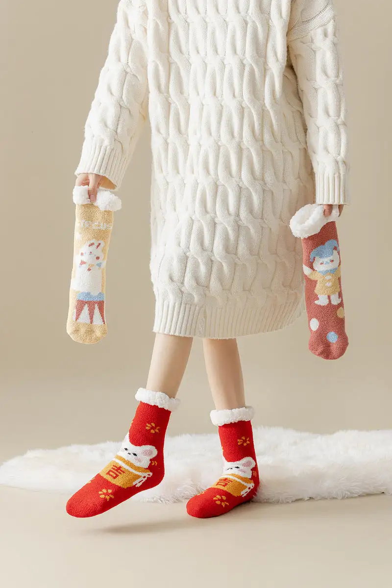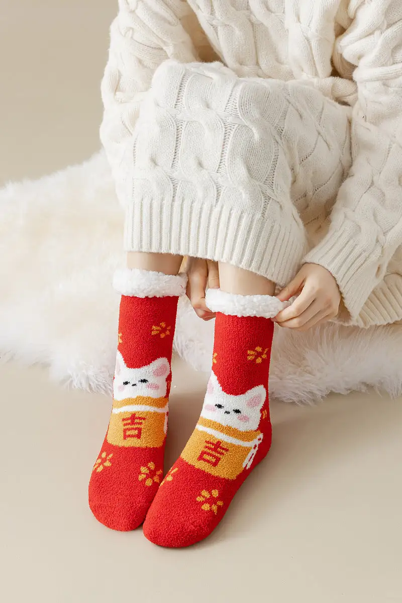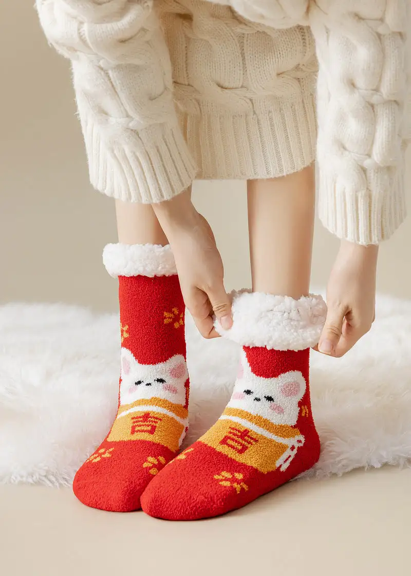 Lamb Velvet Socks Women's Winter Sleep Socks Silicone Non-Slip Floor Socks Christmas Red Socks