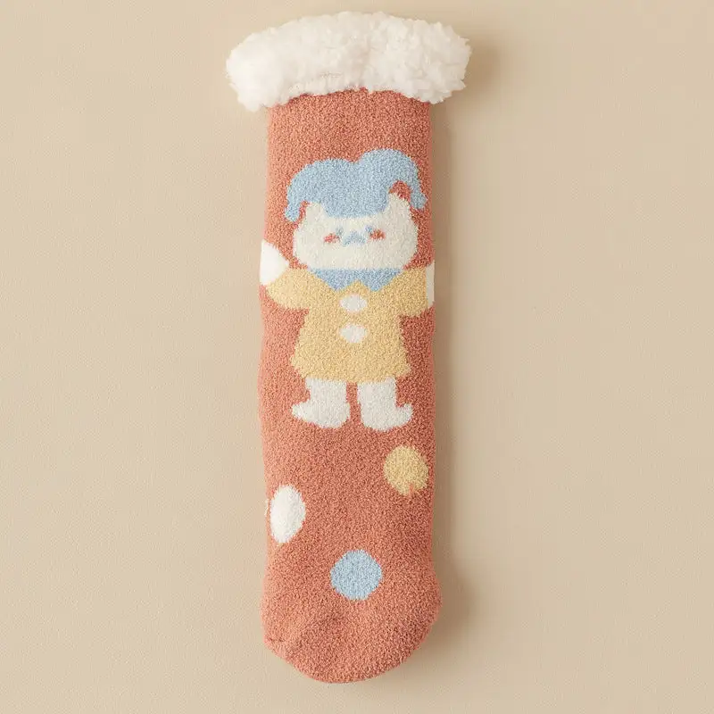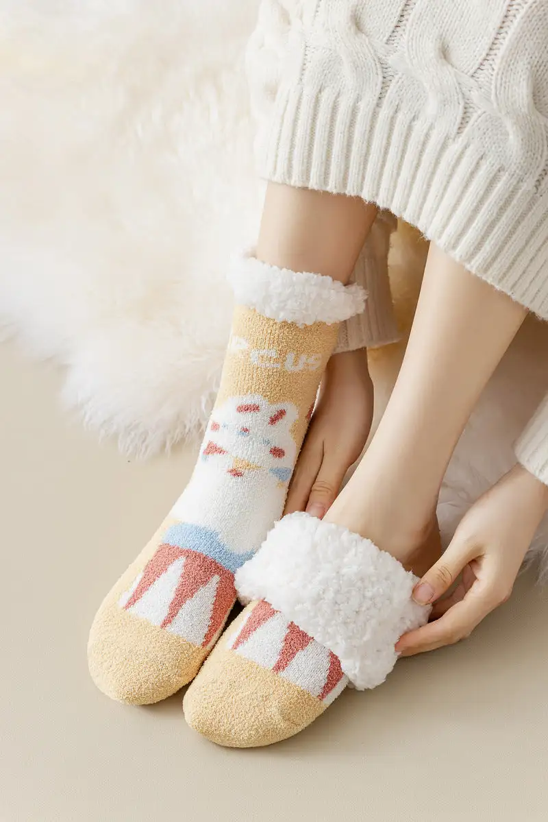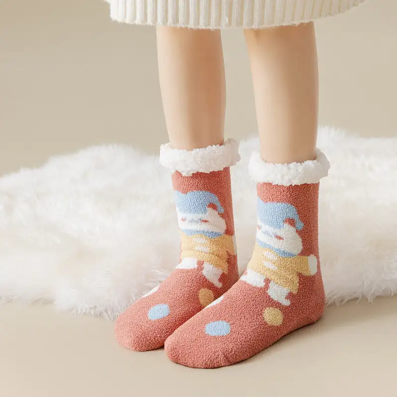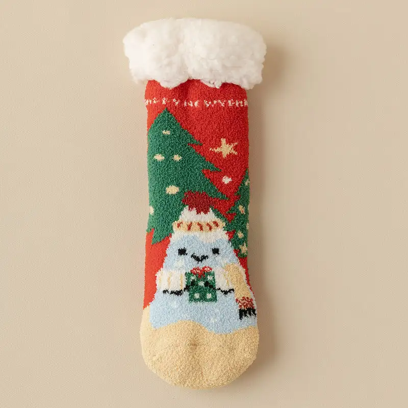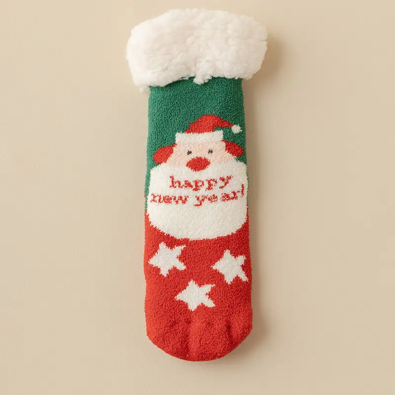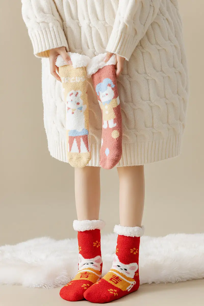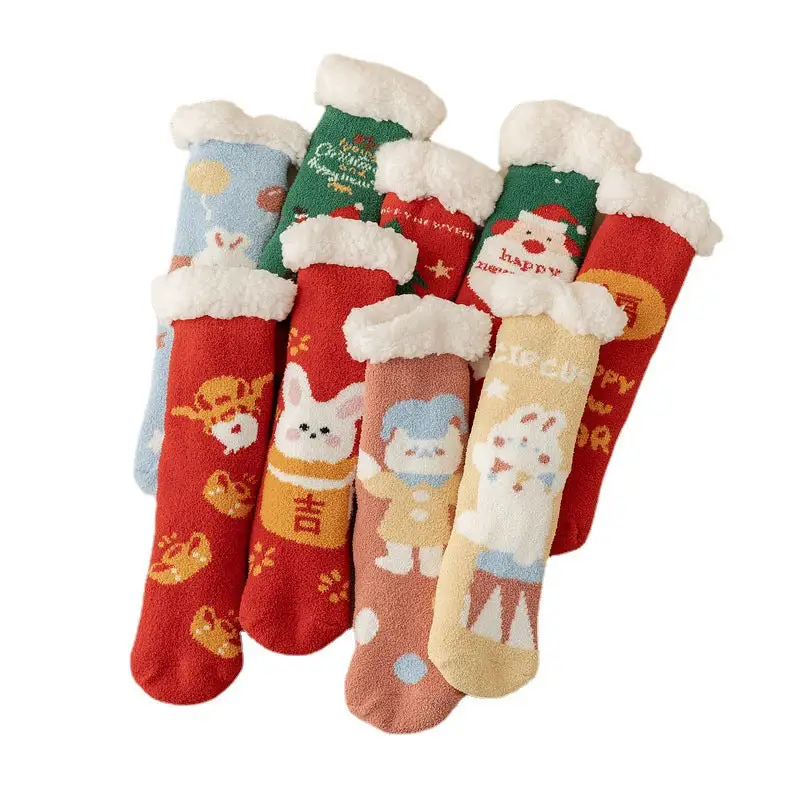 Lamb Velvet Socks Women's Winter Sleep Socks Silicone Non-Slip Floor Socks Christmas Red Socks