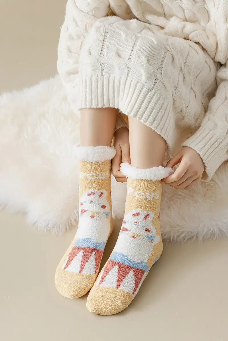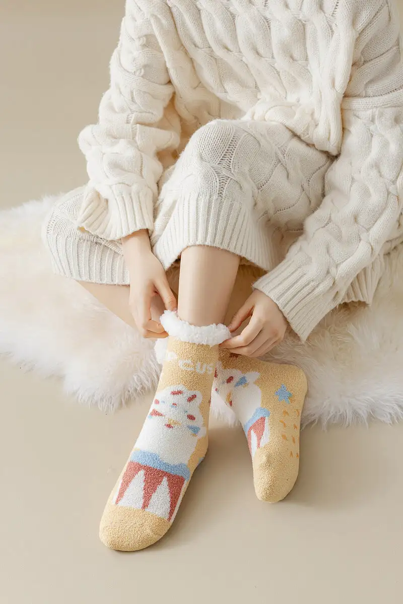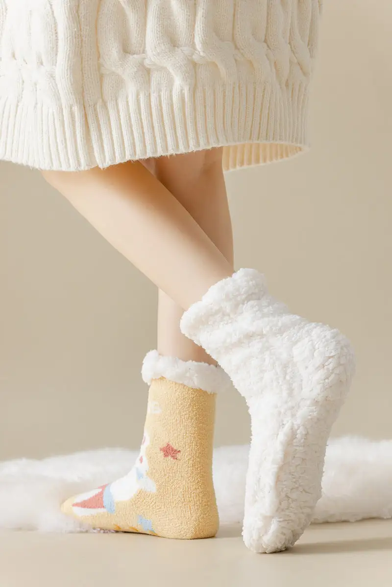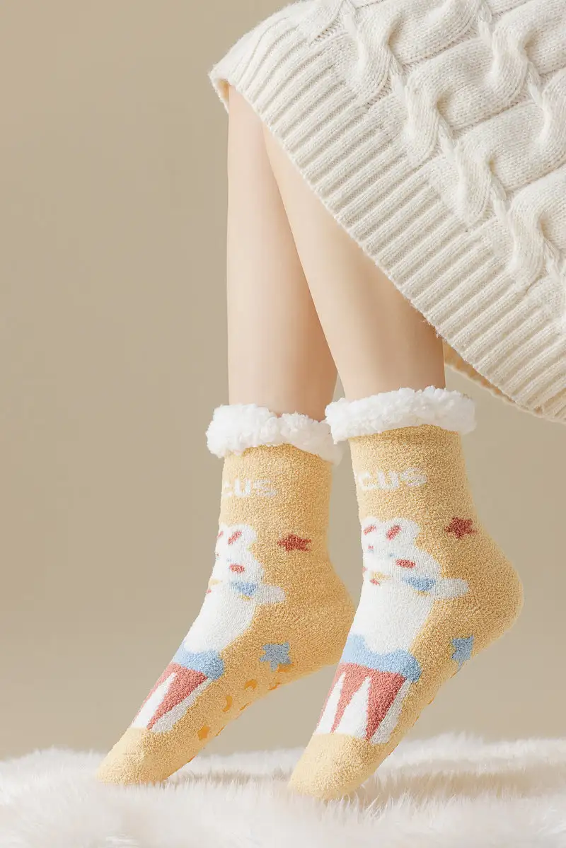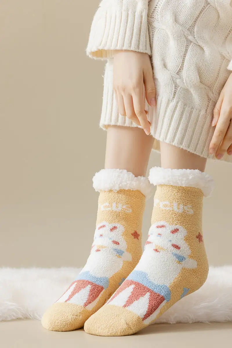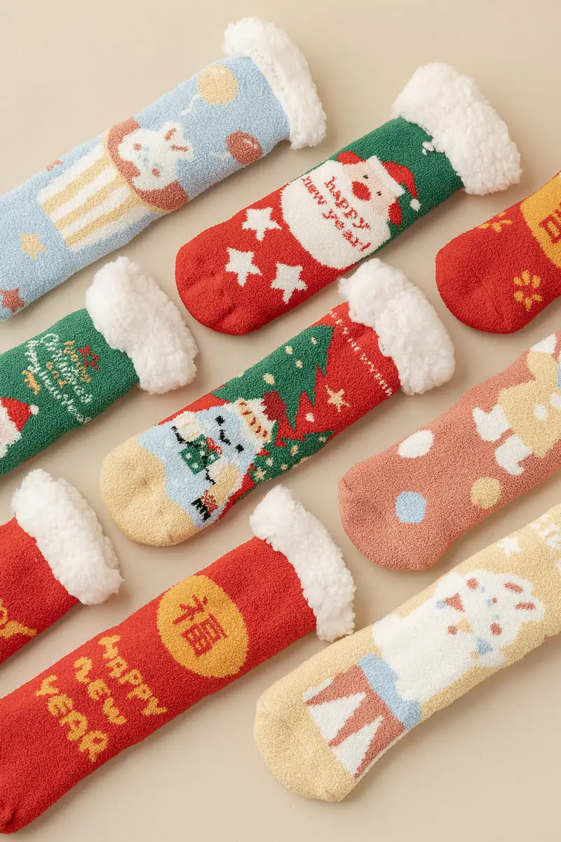Lamb Velvet Socks Women's Winter Sleep Socks Silicone Non-Slip Floor Socks Christmas Red Socks