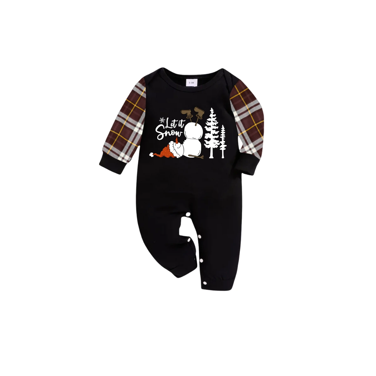 Let It Snow Family Christmas Pajamas - Black & Brown Plaid