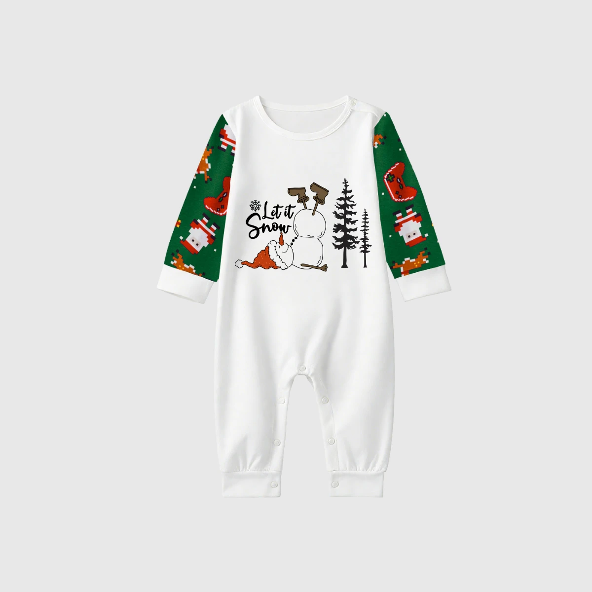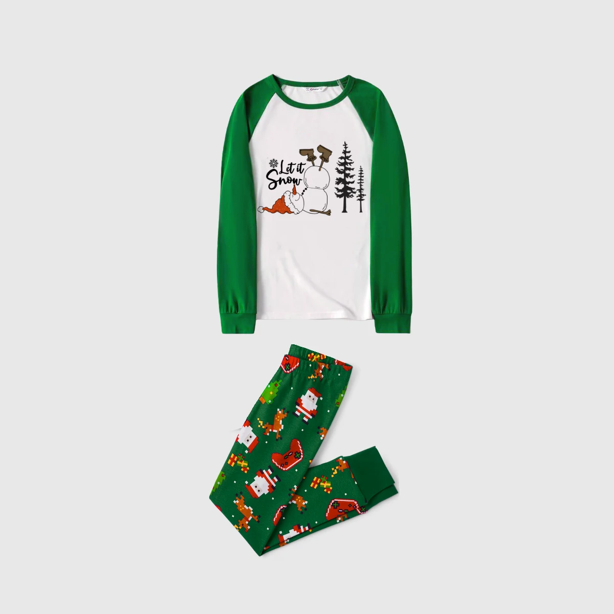 Let it Snow Family Pajamas - Green Santa Pattern