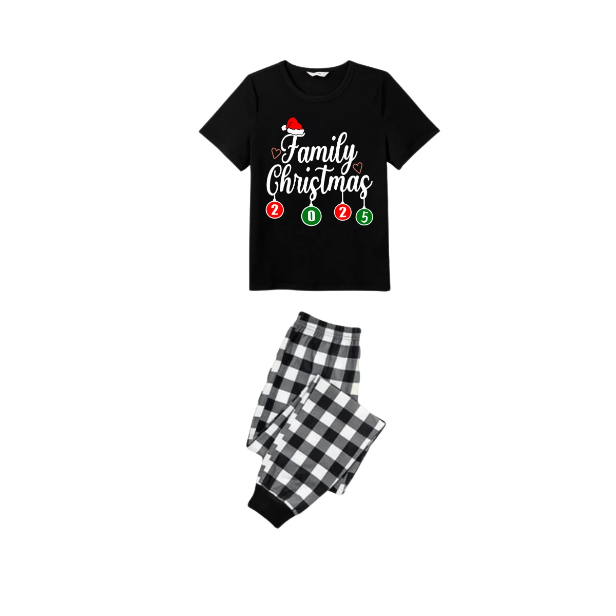 Make Christmas Great Again Family Pajamas Set - Black Top Black and White Plaid Pants Santa Claus Graphic