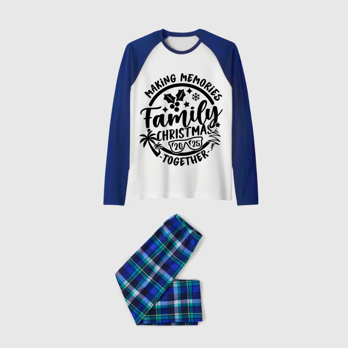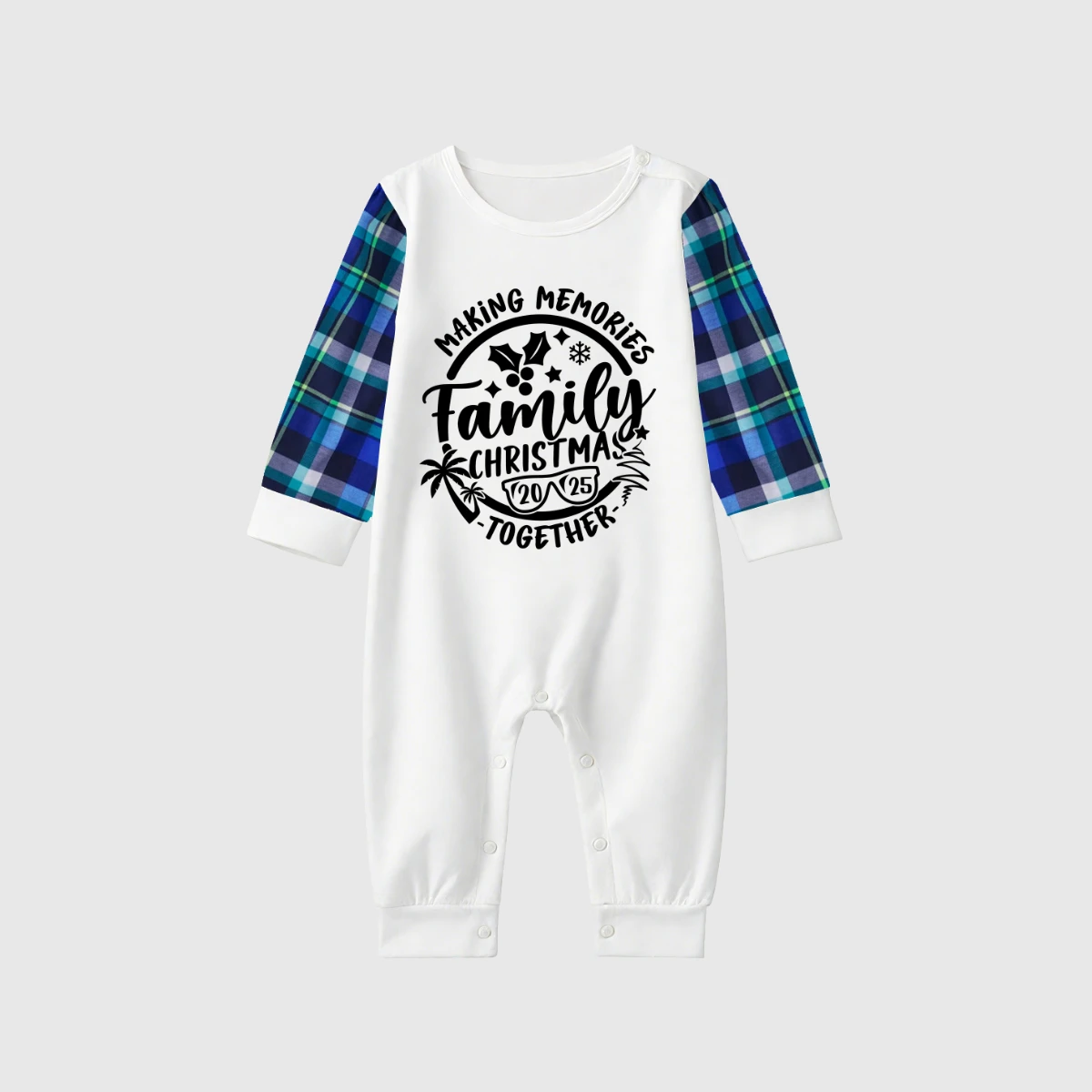 Making Memories Family Christmas Pajamas - White & Navy Blue Plaid