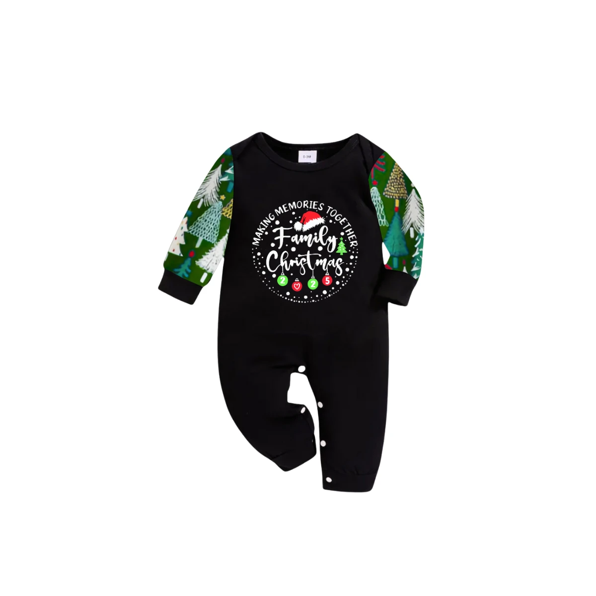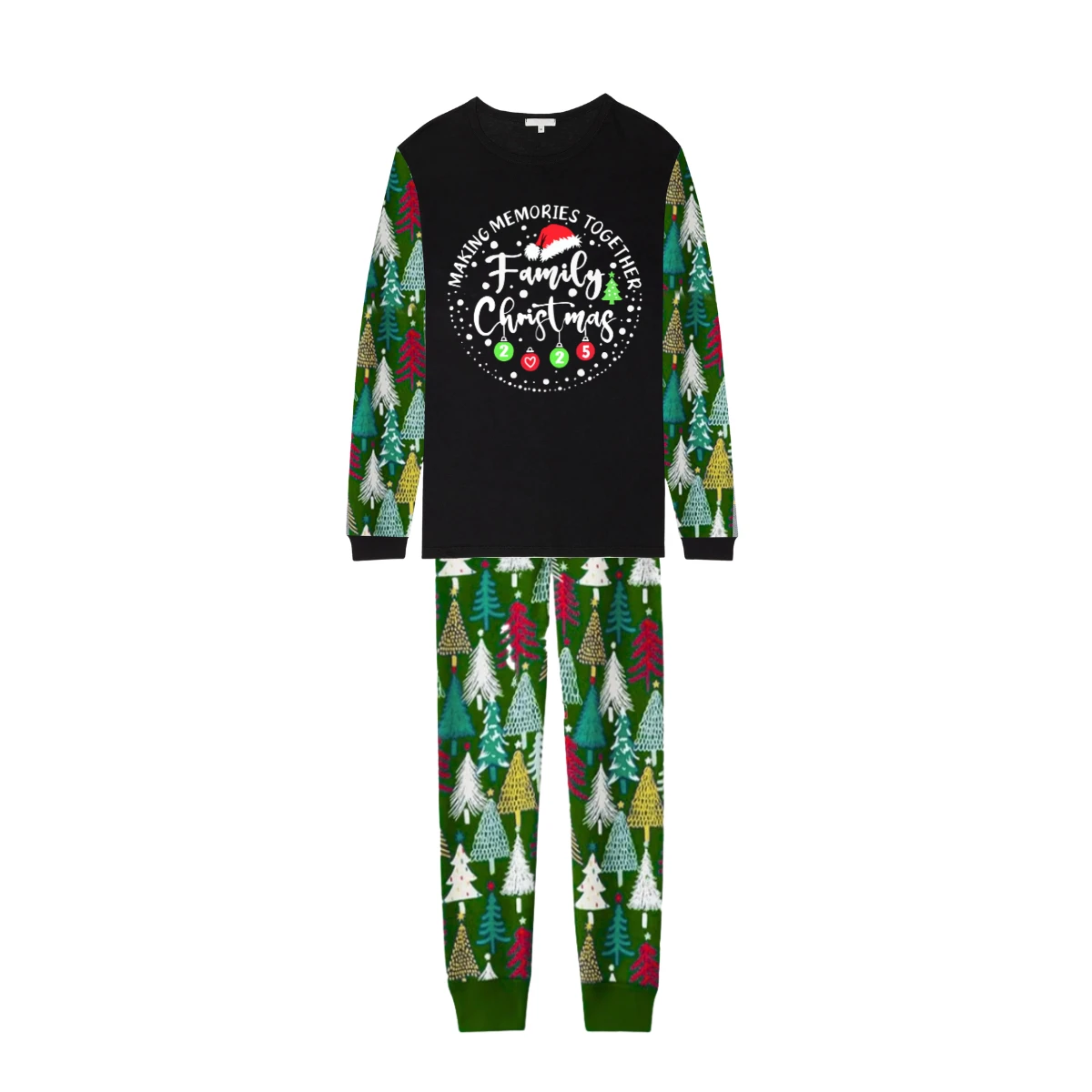 Making Memories Together Family Christmas 2025 Family Pajamas Set - Black Top, Green Pants, Christmas Tree Print Sleeves