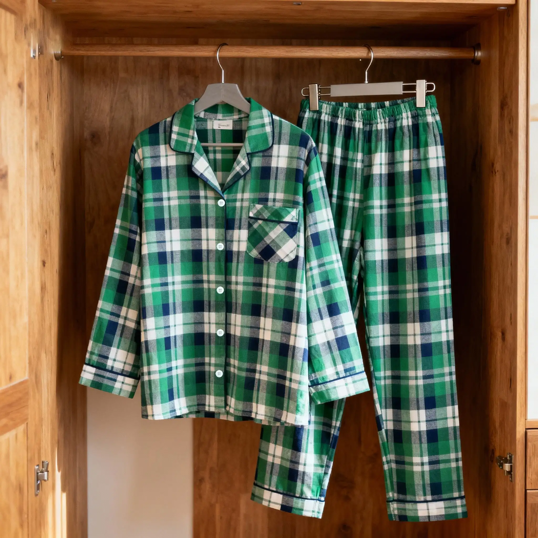 green-button Christmas pajamas-2025 Plaid Button-down Pjs cotton-pjsButton up Pjs jenny