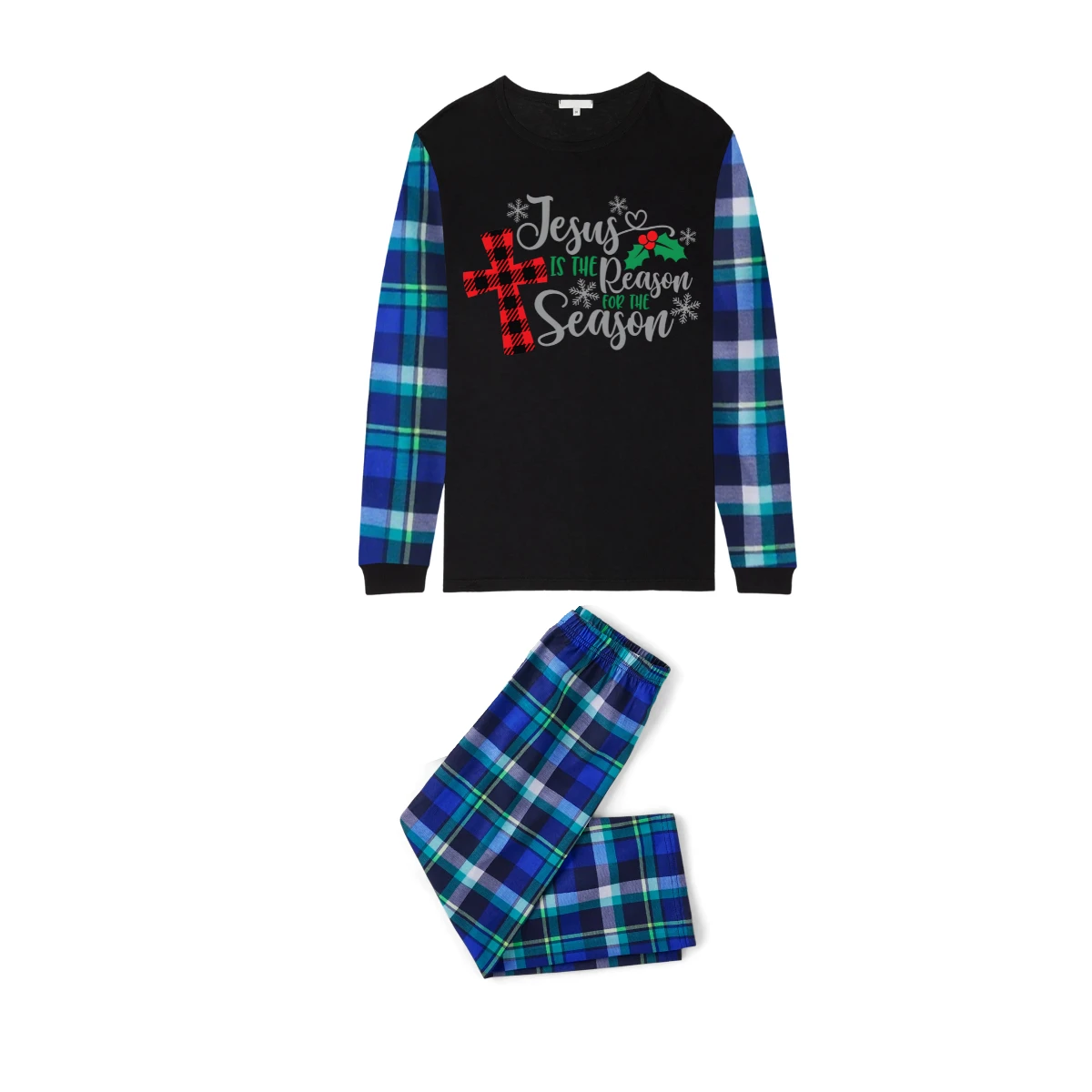 Matching Family Christmas Pajamas Jesus Is the Reason, Blue Plaid