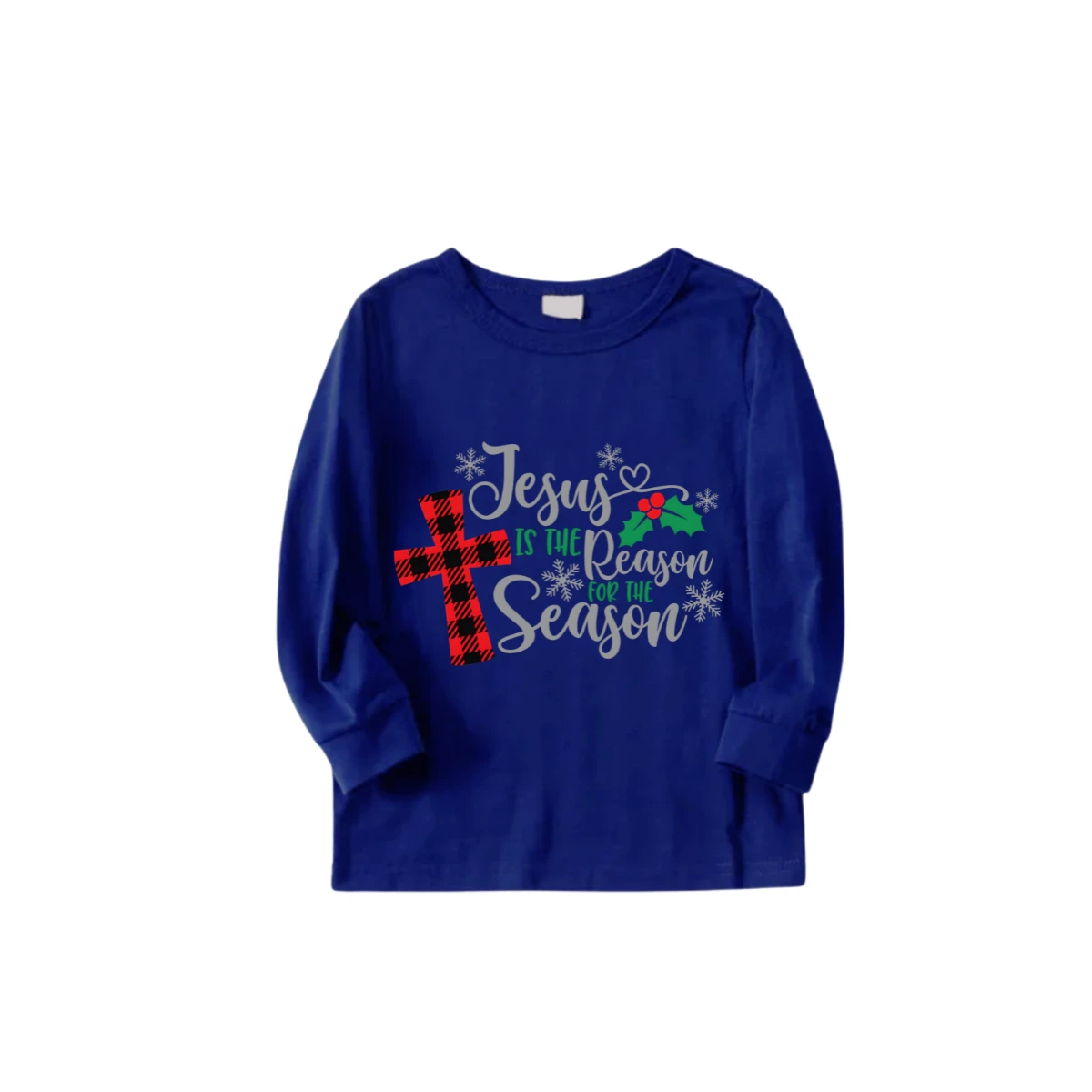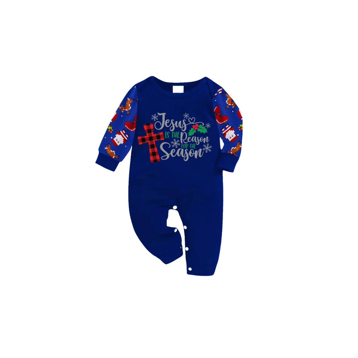 Matching Family Christmas Pajamas Jesus Is the Reason, Blue with Santa Pattern
