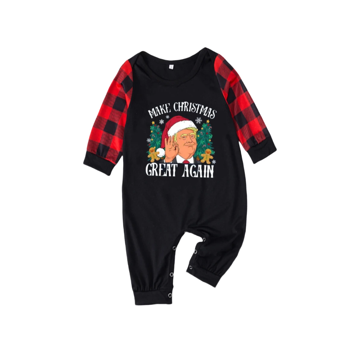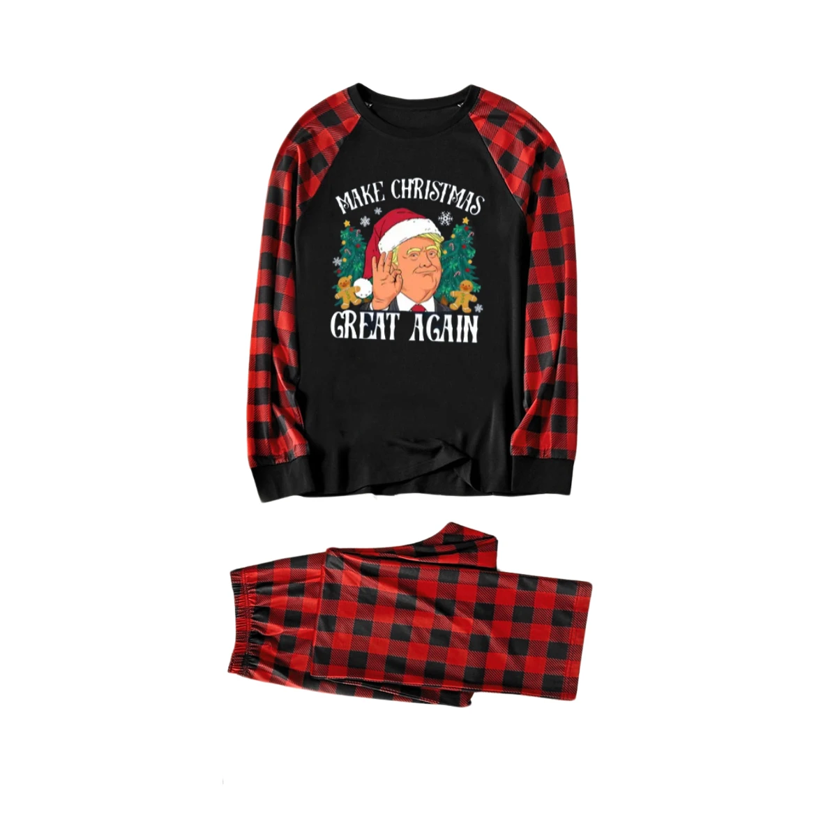 "MERRY CHRISTMAS GREAT AGAIN" Letter Printed Classical Red and Black Plaid Family Pajamas Sets