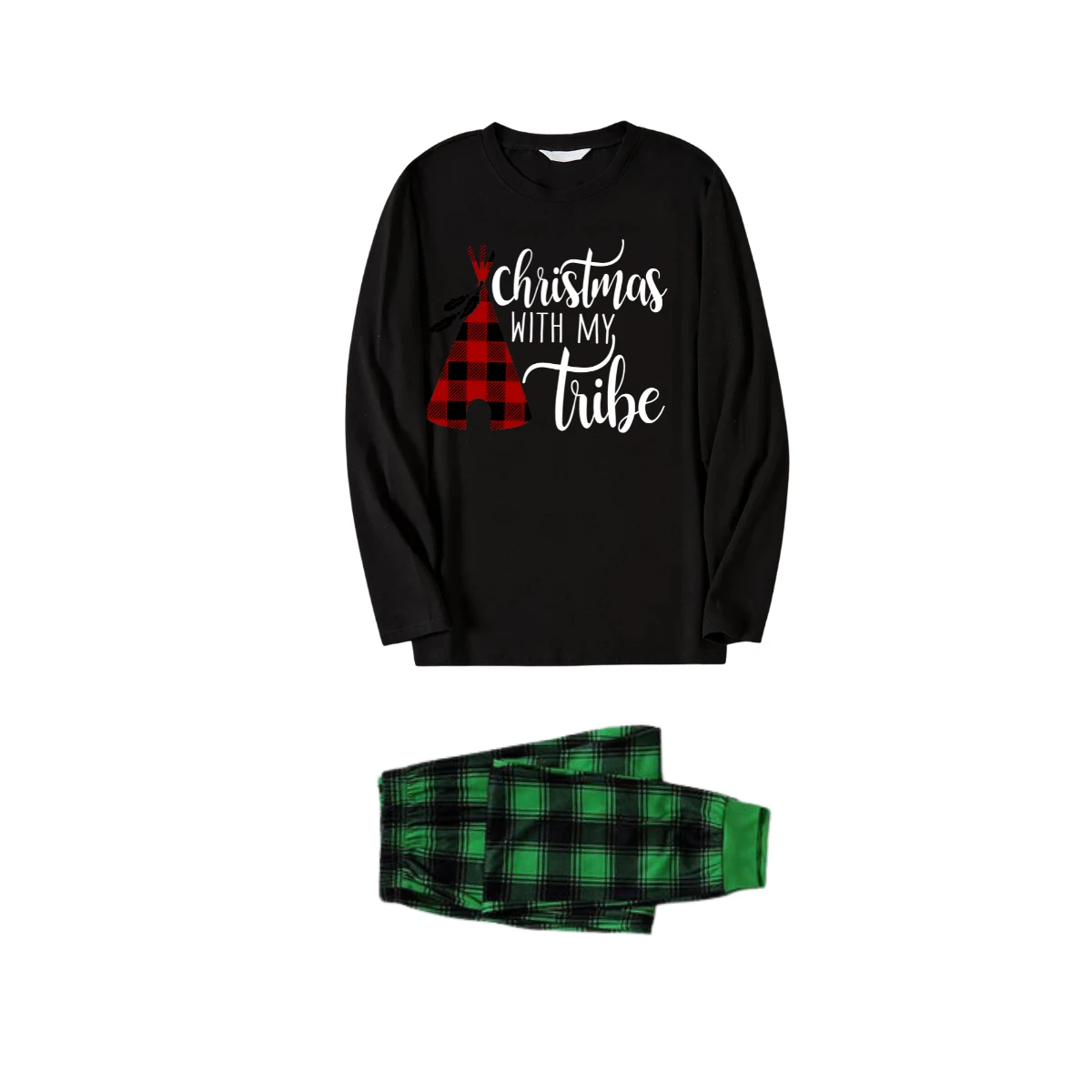 Get ready to cozy up in style with our "Christmas "Believe" Text Print Black Long Sleeve Top with Green and Black Plaid Family Matching Pajamas". perfect for the festive season. This adorable ensemble is designed for the whole family. including your beloved furry friend.