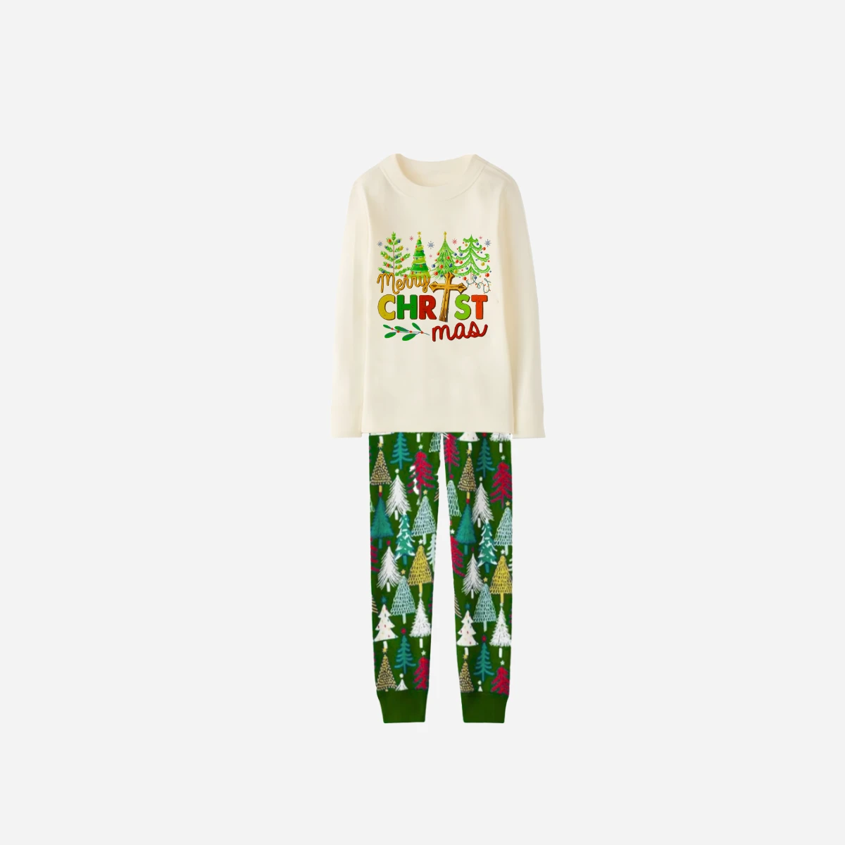 Merry Christmas Trees Family Christmas Pajamas Set - White Top with Christmas Tree Printed Pants