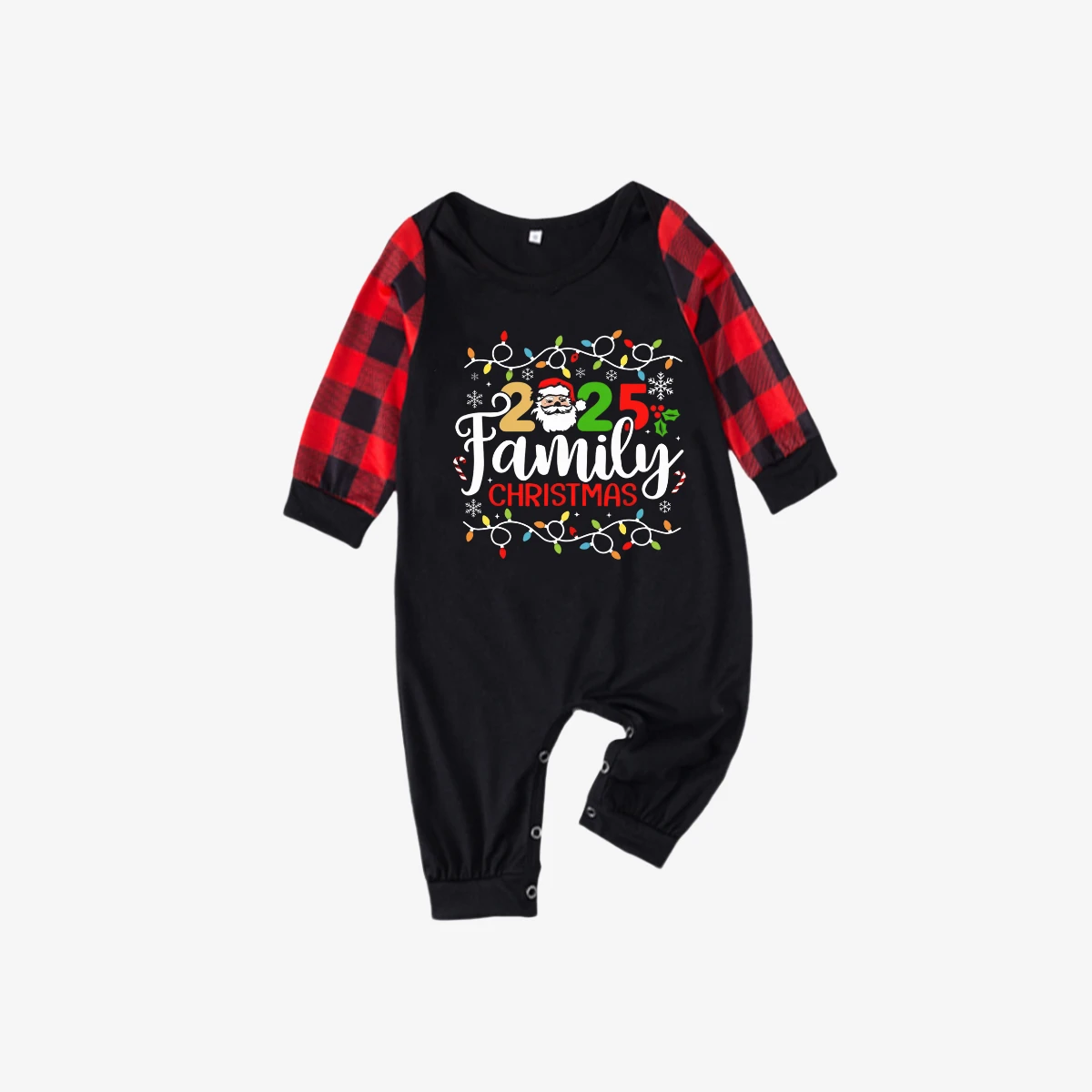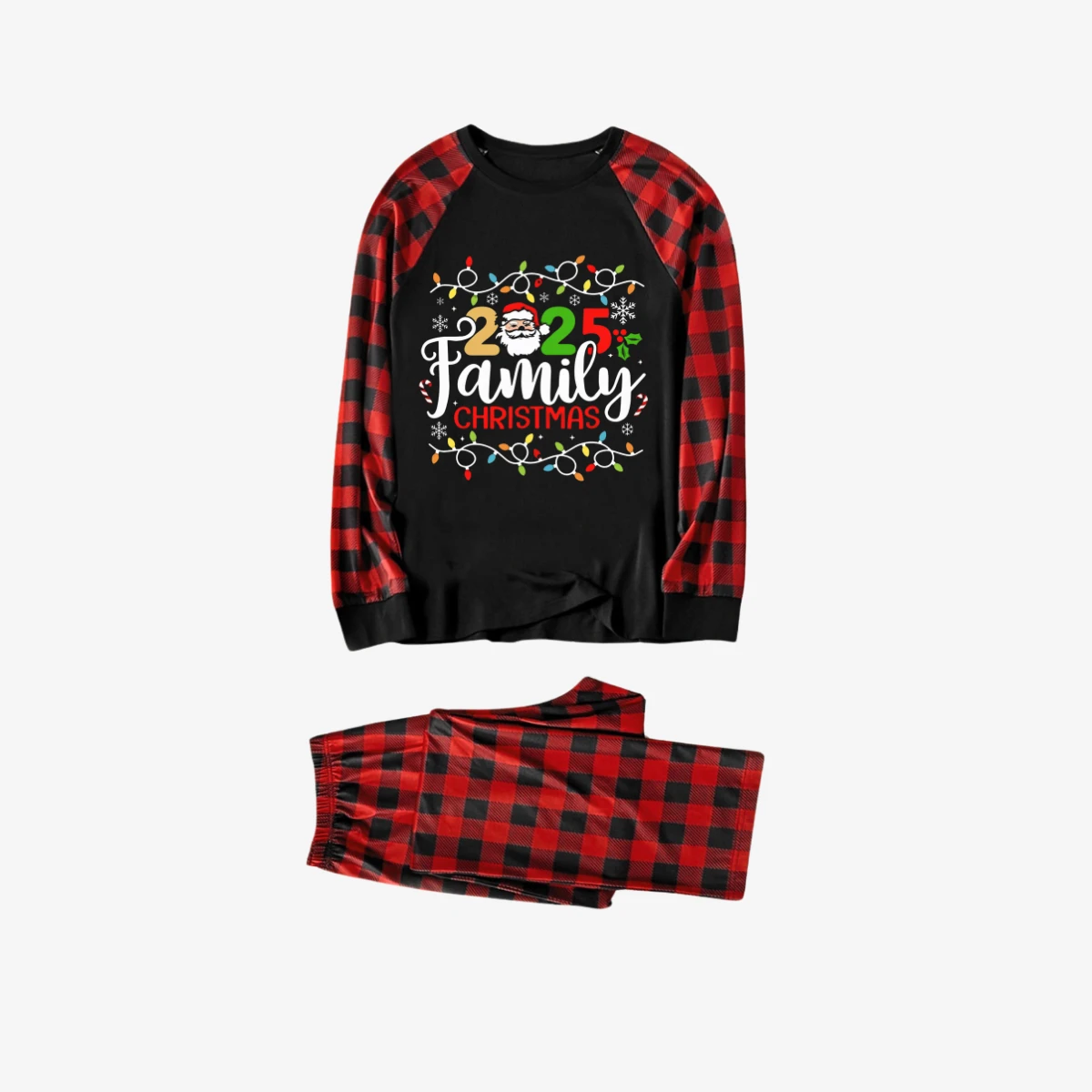 Red and Black Plaid Christmas Pajamas Set With Christmas Light and "2025 Family Christmas" Text Print