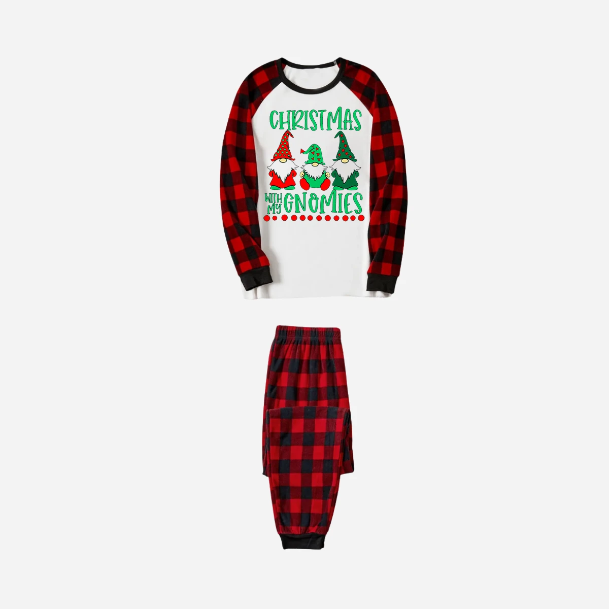 Red and Black Plaid Christmas Pajamas Set With "Christmas With My Gnomies" Text Print