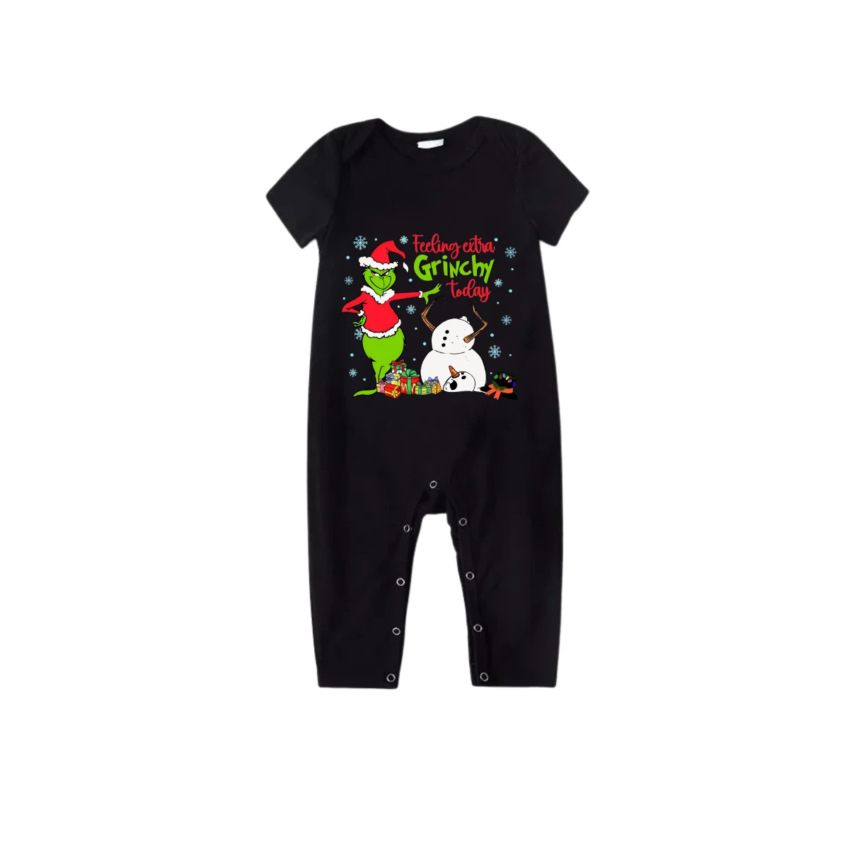 Red and Black Plaid Short Sleeve Christmas Pajamas Set With Grinch and Snowman Print
