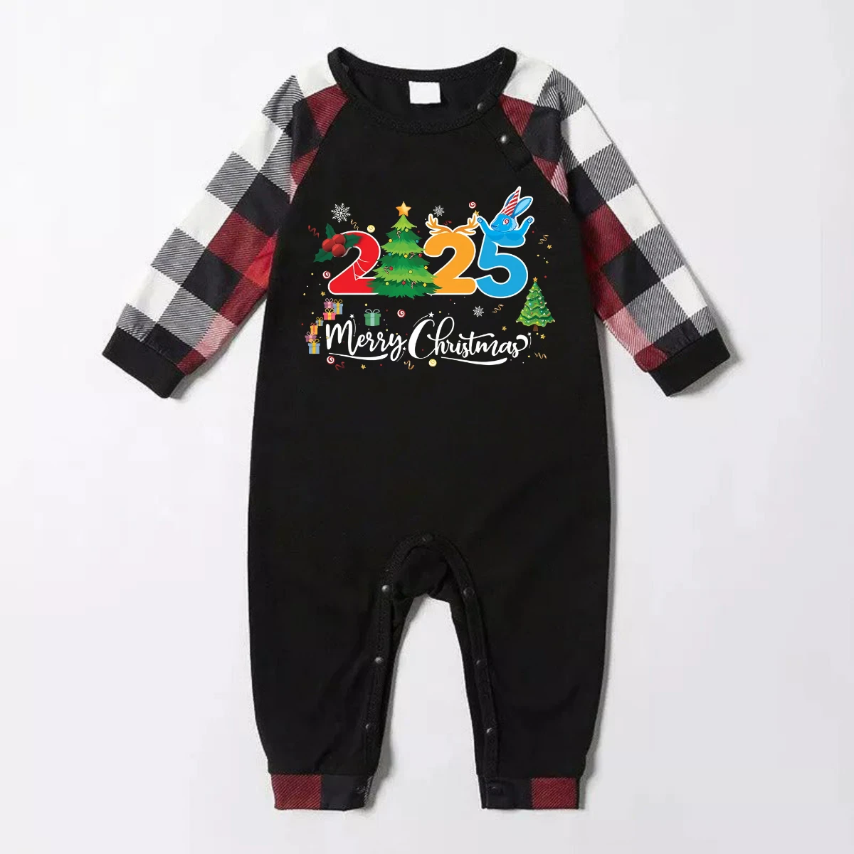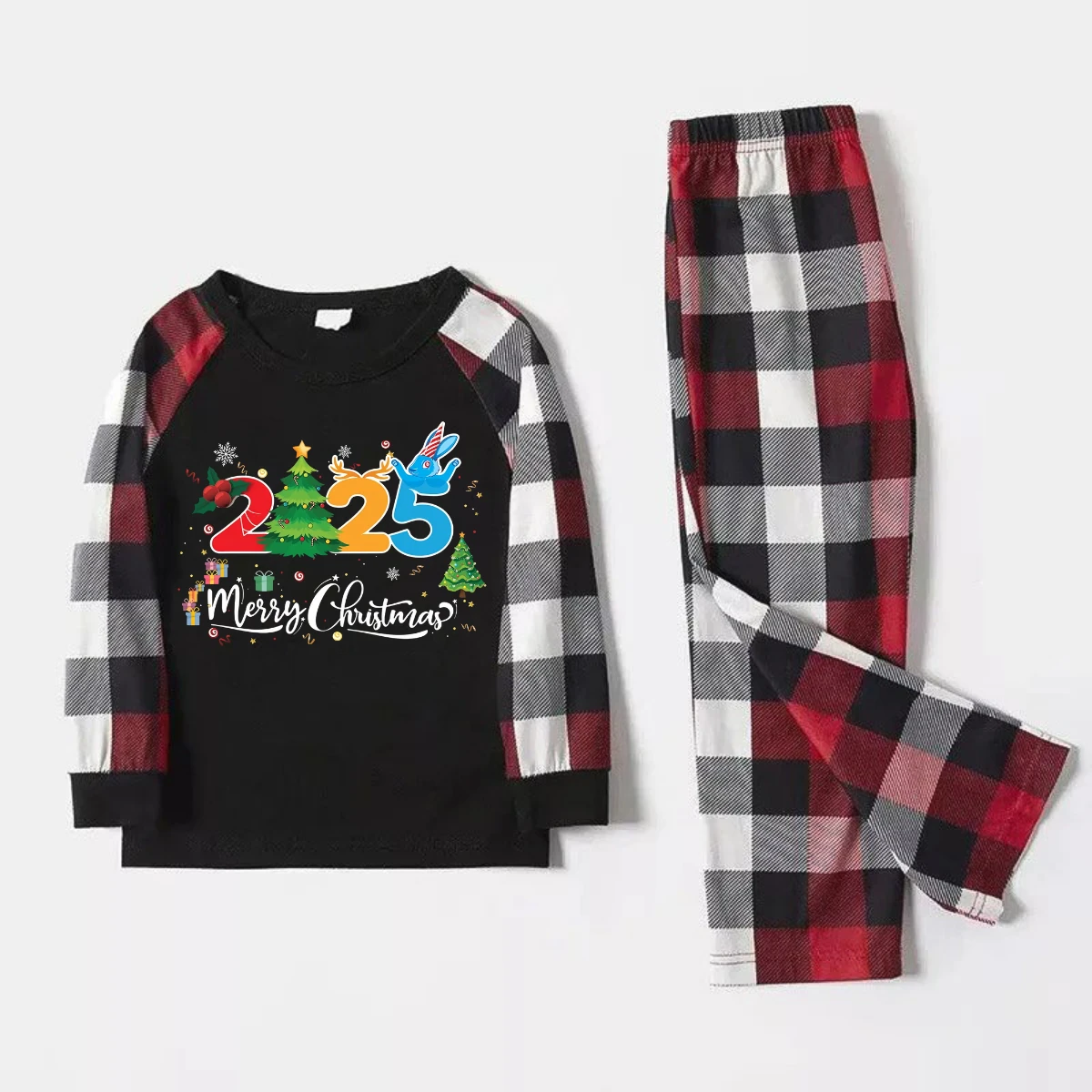 Red and Gray Plaid Christmas Pajamas Set With "2025 Merry Christmas" Text Print