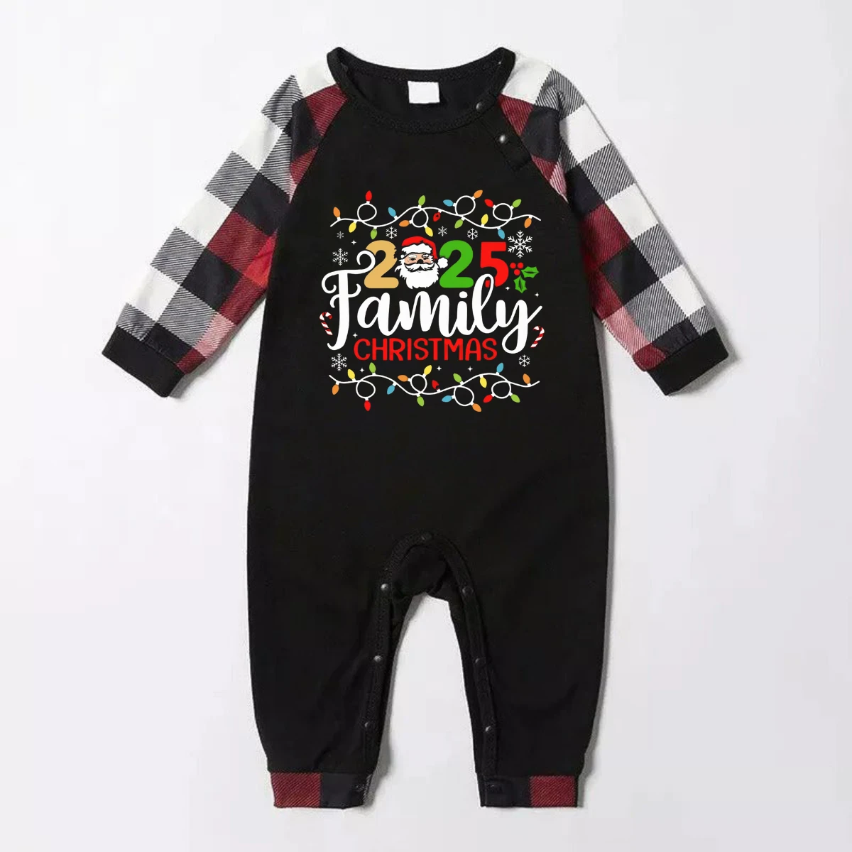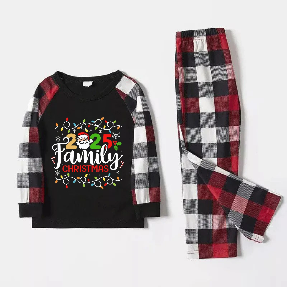 Red and Gray Plaid Christmas Pajamas Set With Christmas Light and "2025 Family Christmas" Text Print