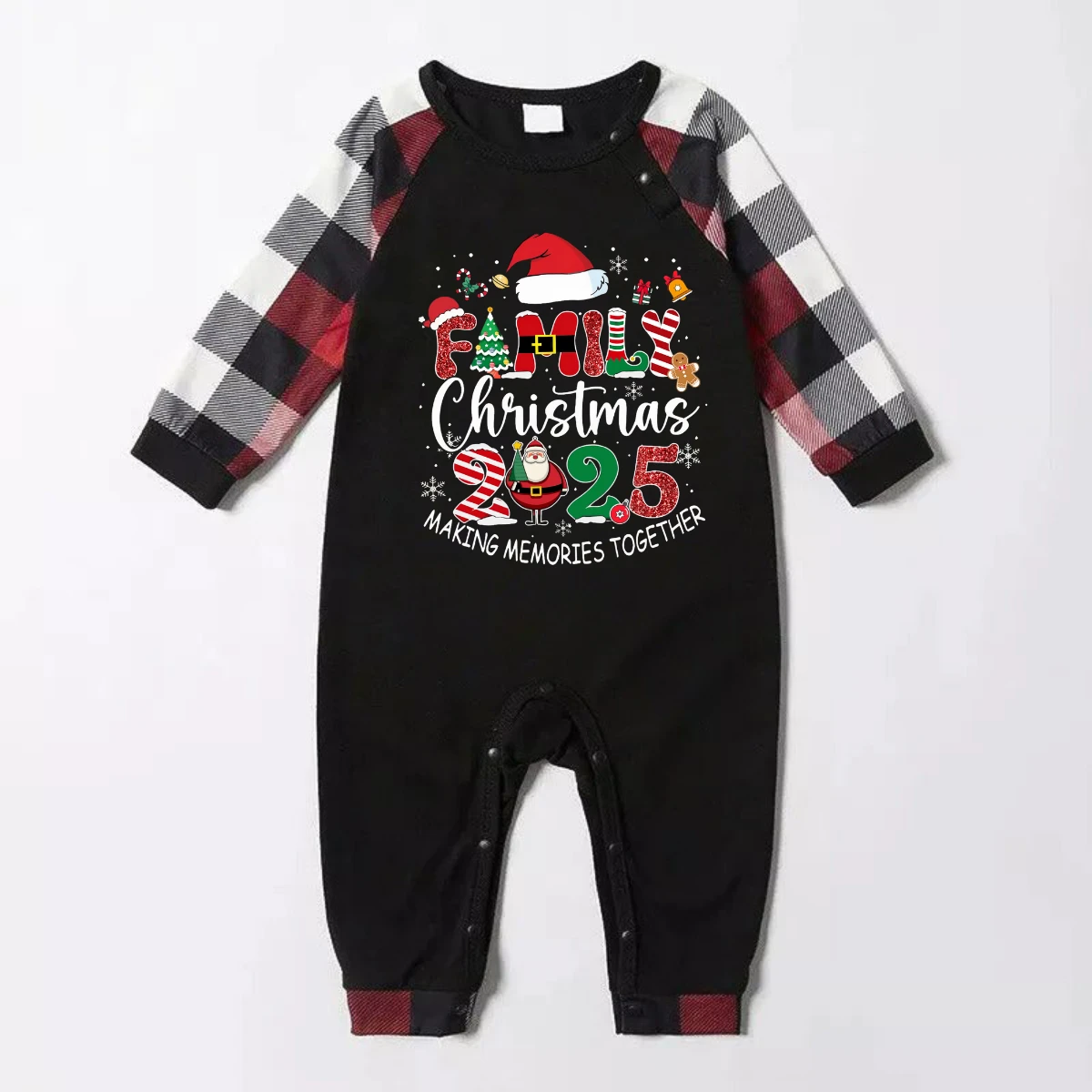 Red and Gray Plaid Christmas Pajamas Set With "Family Christmas 2025 Making Memories Together" Text Print