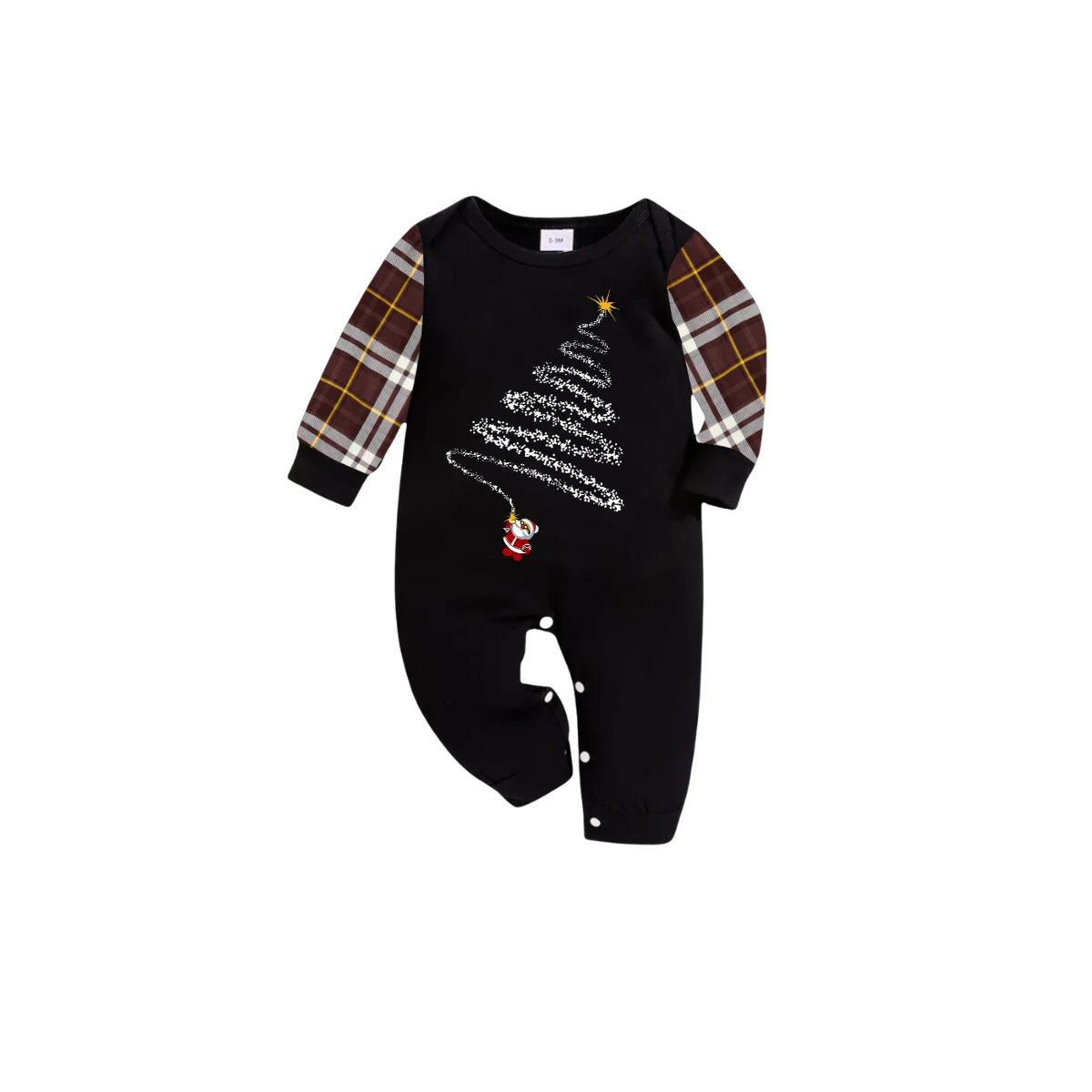 Santa's Christmas Tree Pajama Set with Plaid Sleeves
