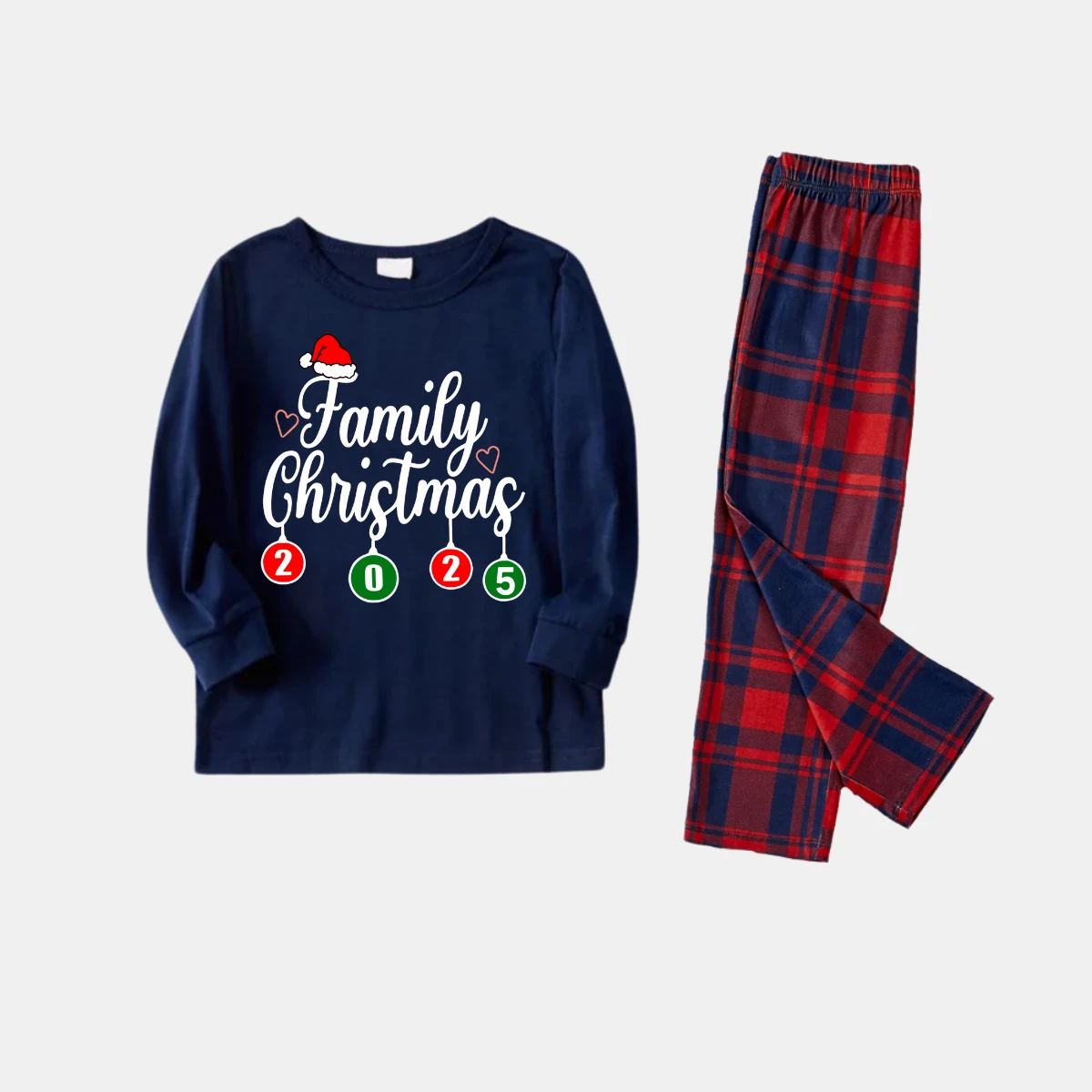"Family Christmas 2025" Letter Printed Red and Blue Plaid Christmas Matching Pajamas