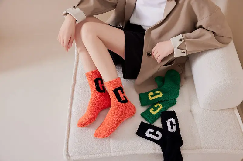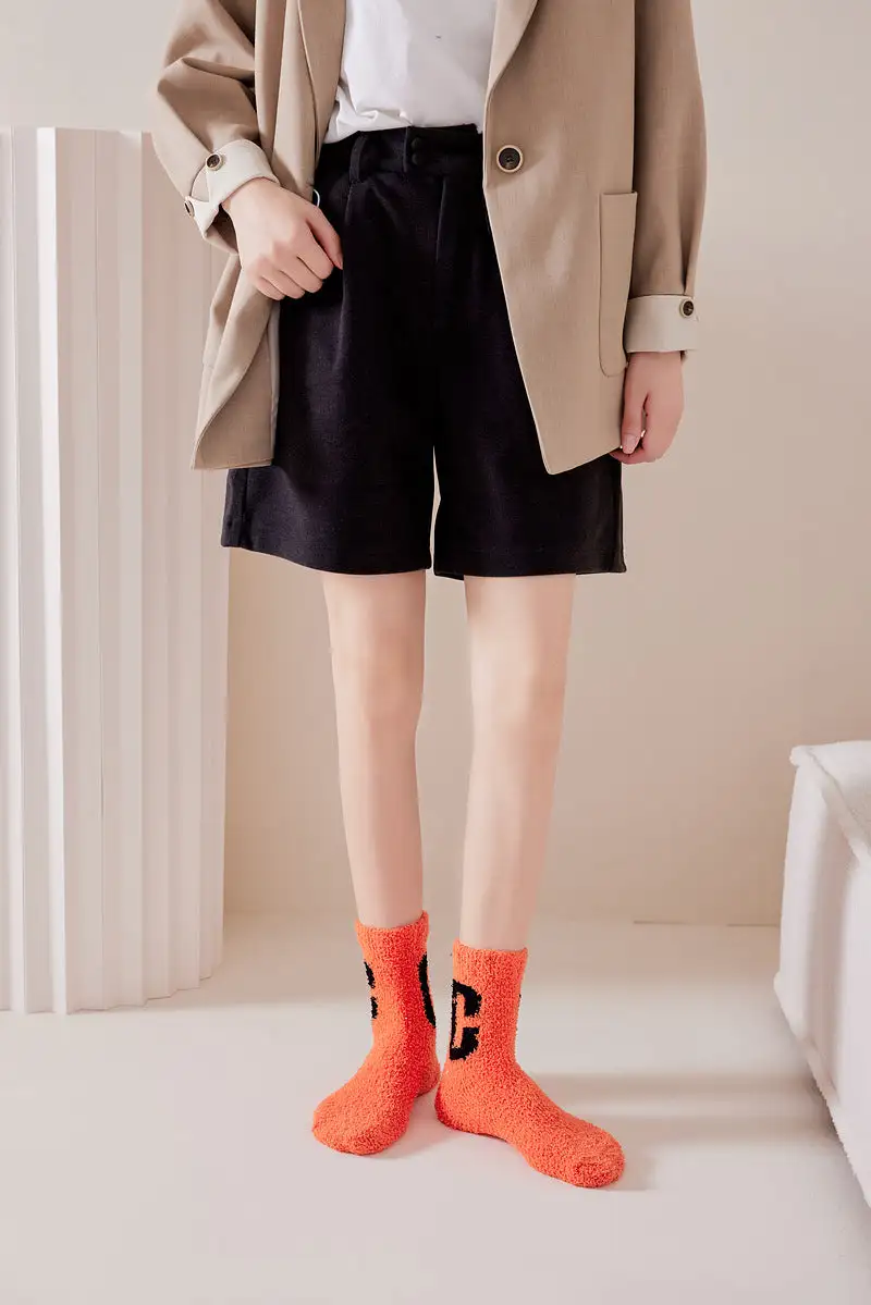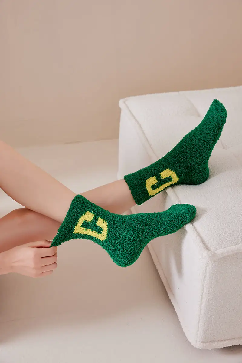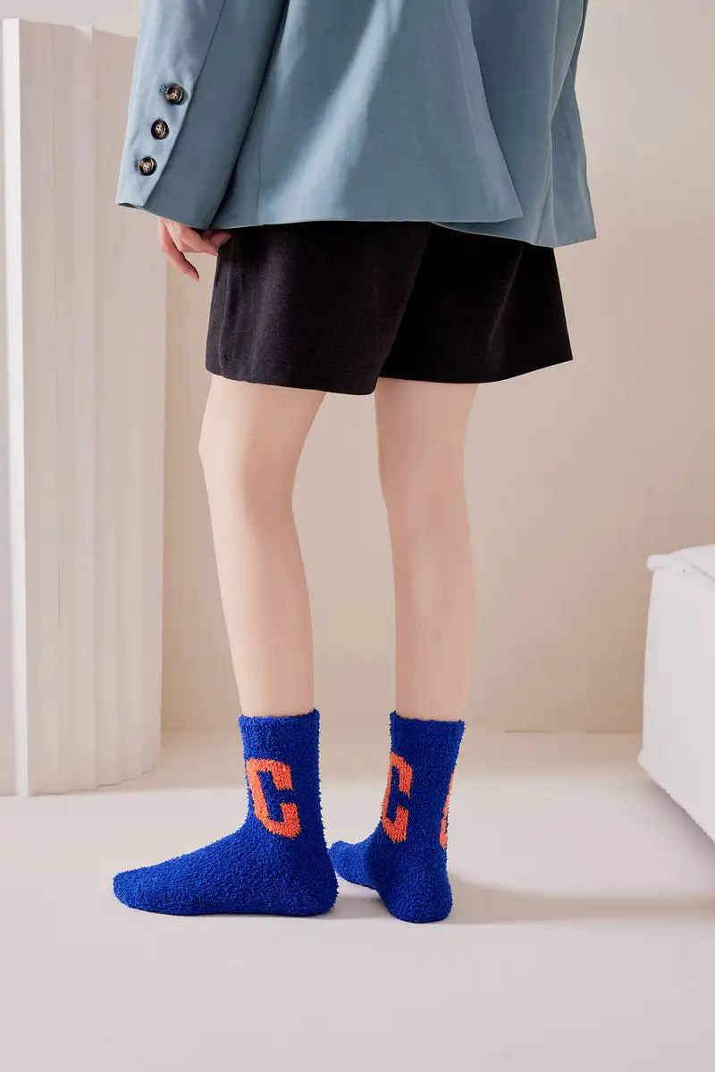 Super Cozy Women's Coral Fleece Socks With Sherpa Lining And Letter Embroidery Holiday Socks
