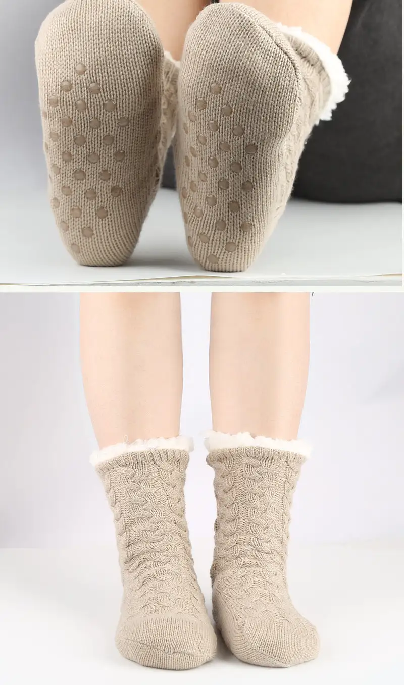 Warm mid-calf socks thickened plus fleece dotted non-slip carpet socks