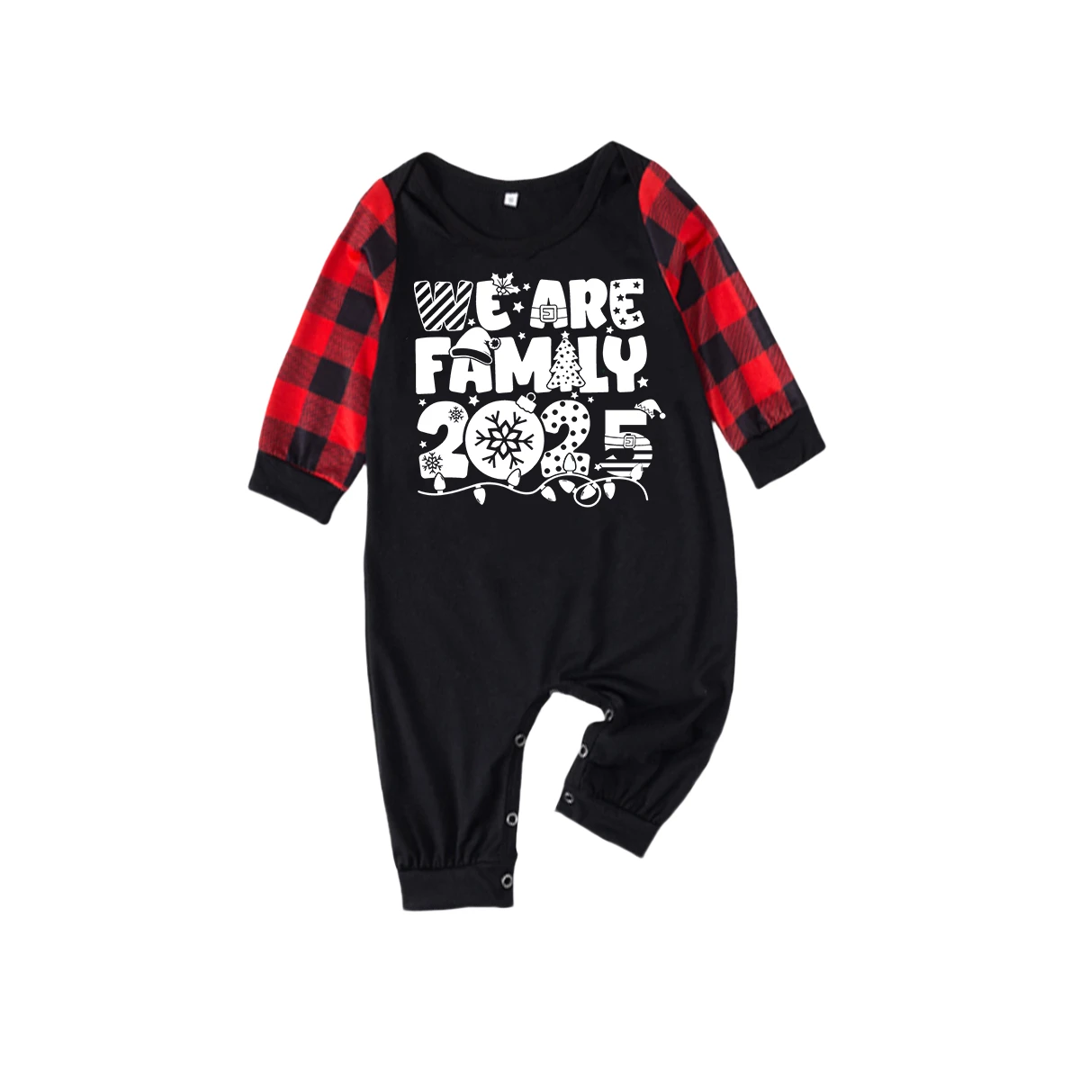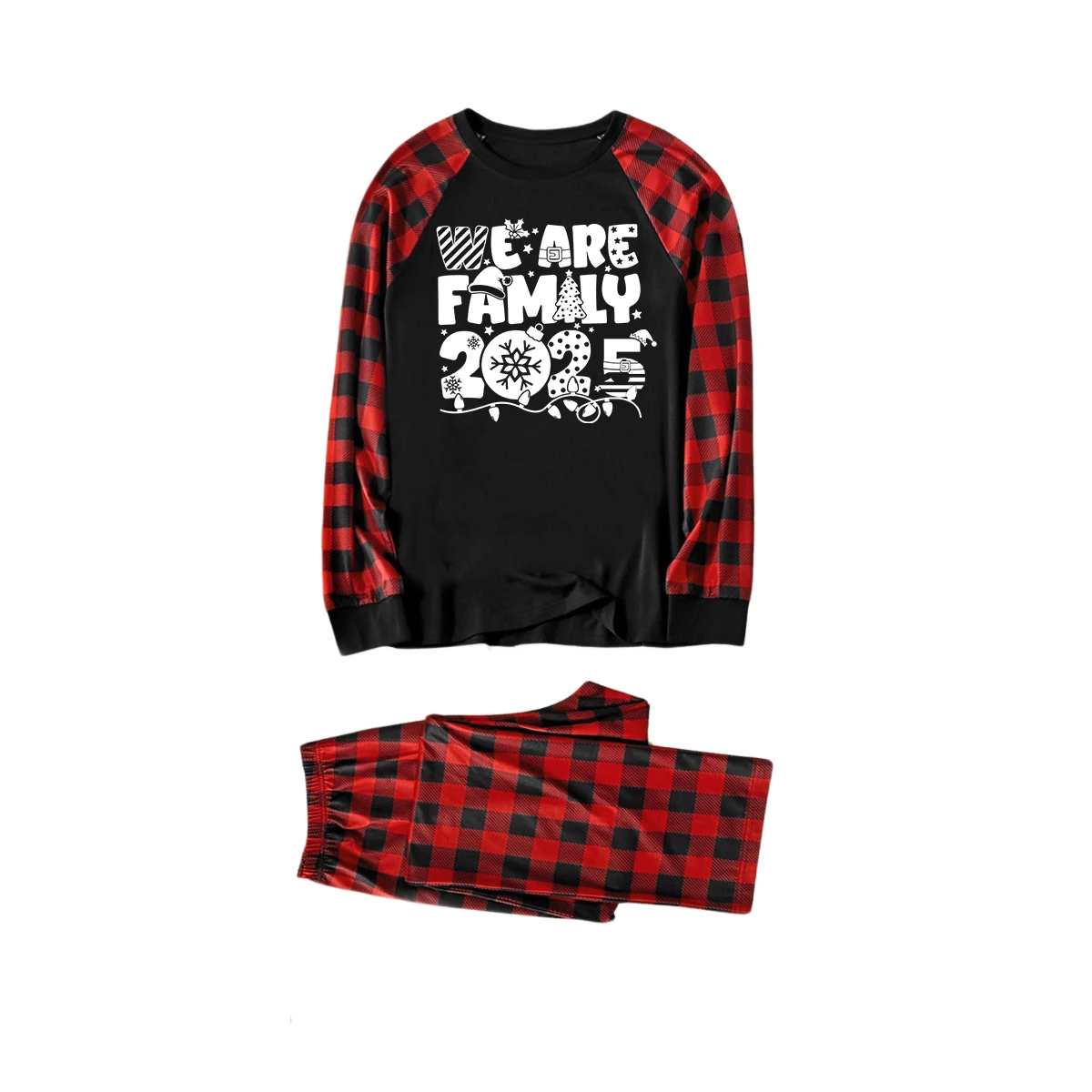 "We are Family 2025" White Letter Print Black & Red Plaid Family Matching Black Pajamas
