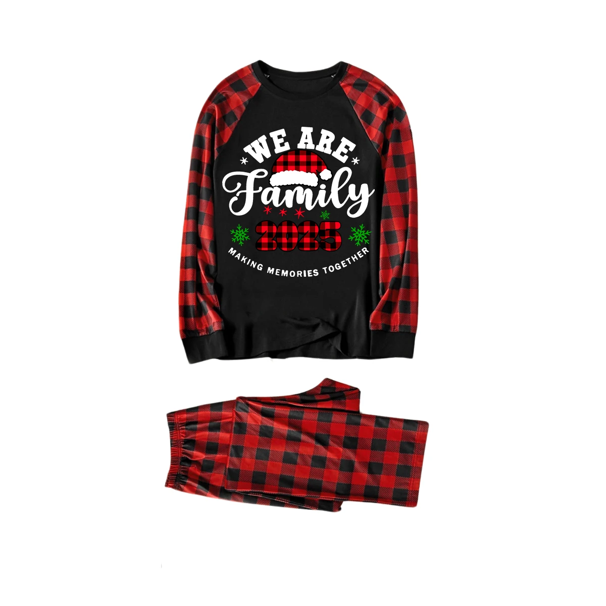 "We are Family2025" Santa Hat Monogram Print Letter Black & Red Plaid Family Matching Black Pajamas