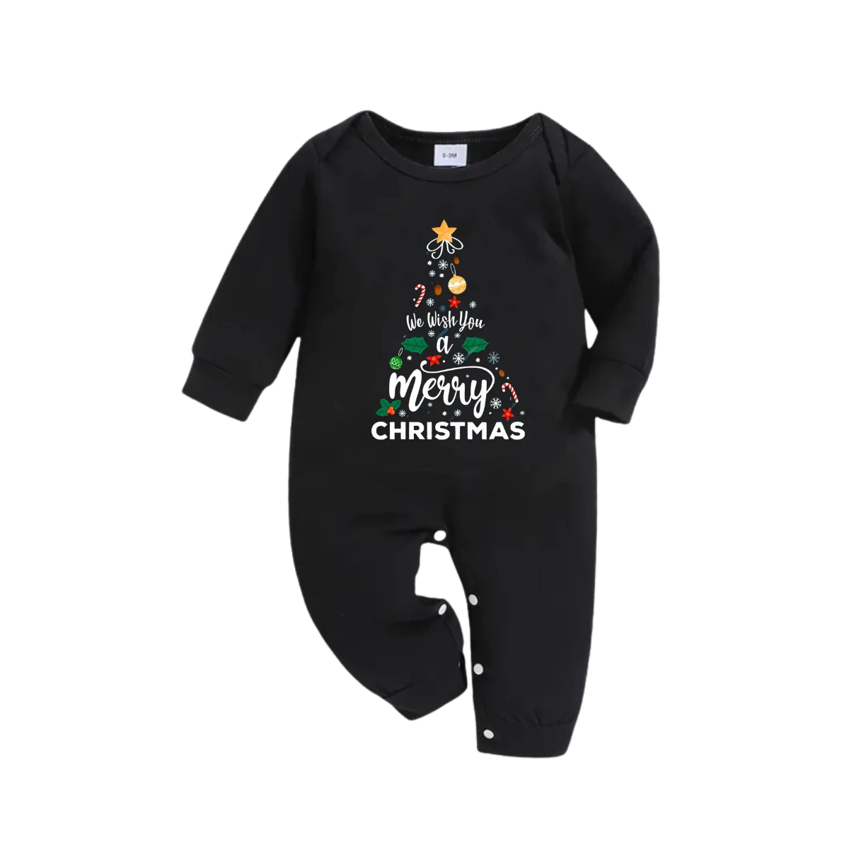Celebrate the holidays with these matching family pajamas."We Wish You a Merry Christmas" Printed Pattern Black Long Sleeve Top with Red & Green Plaid Pants Family Matching Pajamas. Soft and cozy for all ages.