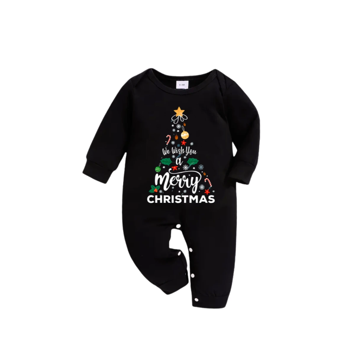 'We wish you a merry CHRISTMAS'And Christmas Tree Pattern Black Long Sleeve Top