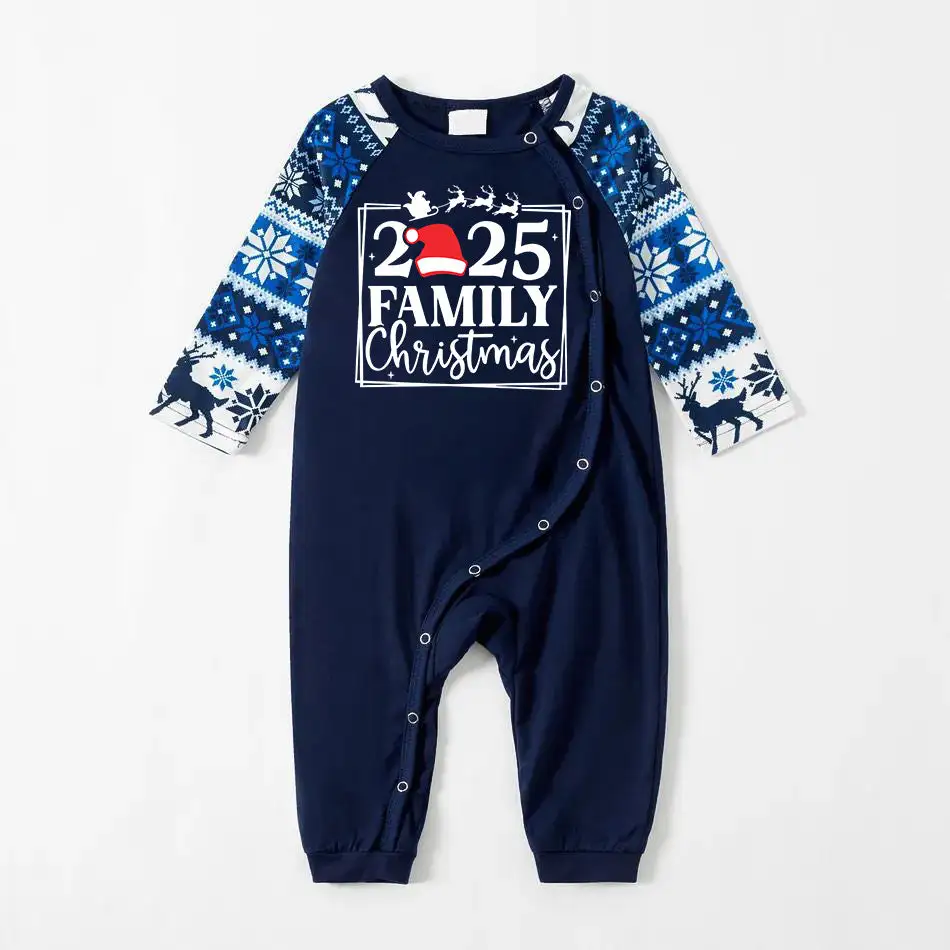 "Family 2025 Christmas" Text and Santa Hat Print Blue Family Matching Pajamas