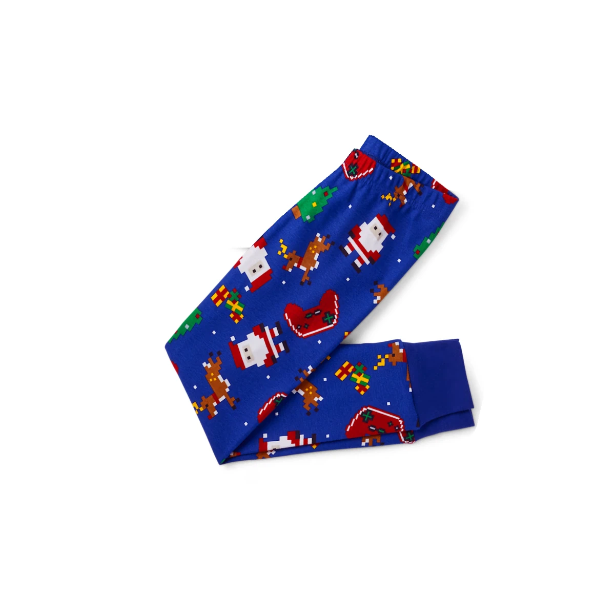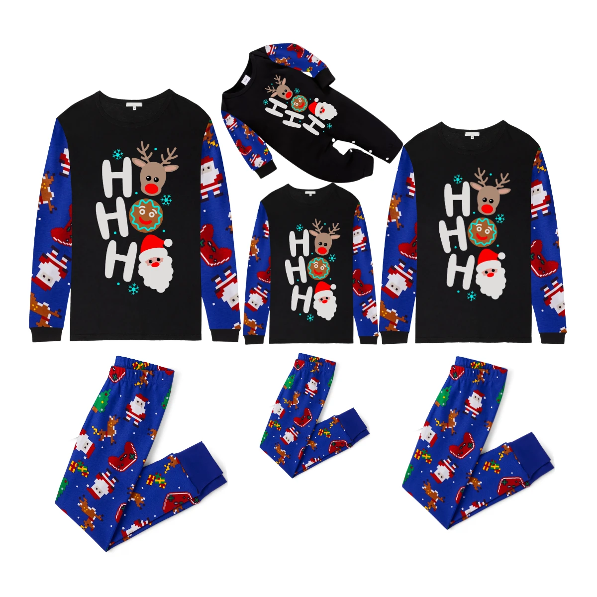 HO HO HO Christmas Pajama Set in Blue with Santa, Reindeer, and Gingerbread