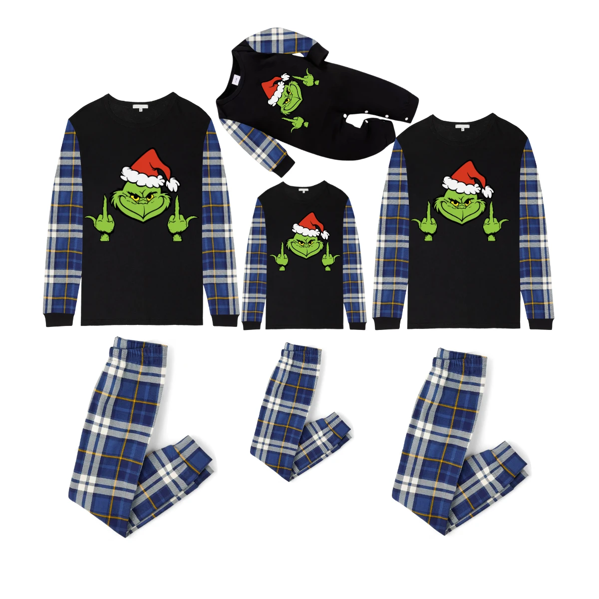 Christmas "2025" Letter Print Black Short Sleeve with Red & Black Plaid Pant Family Matching Pajamas