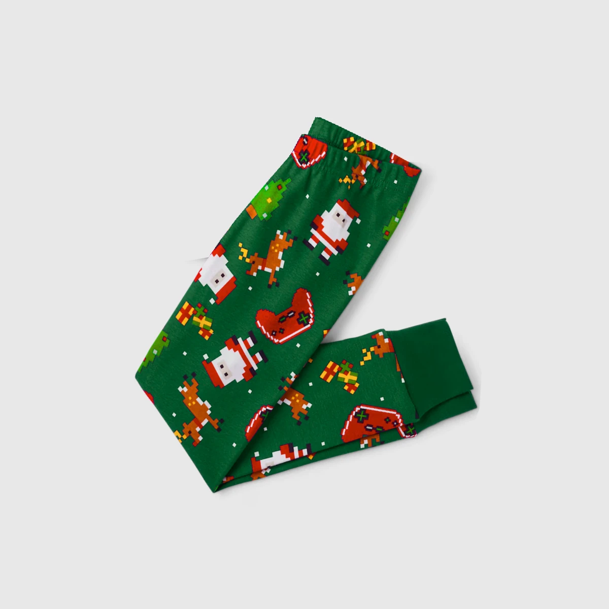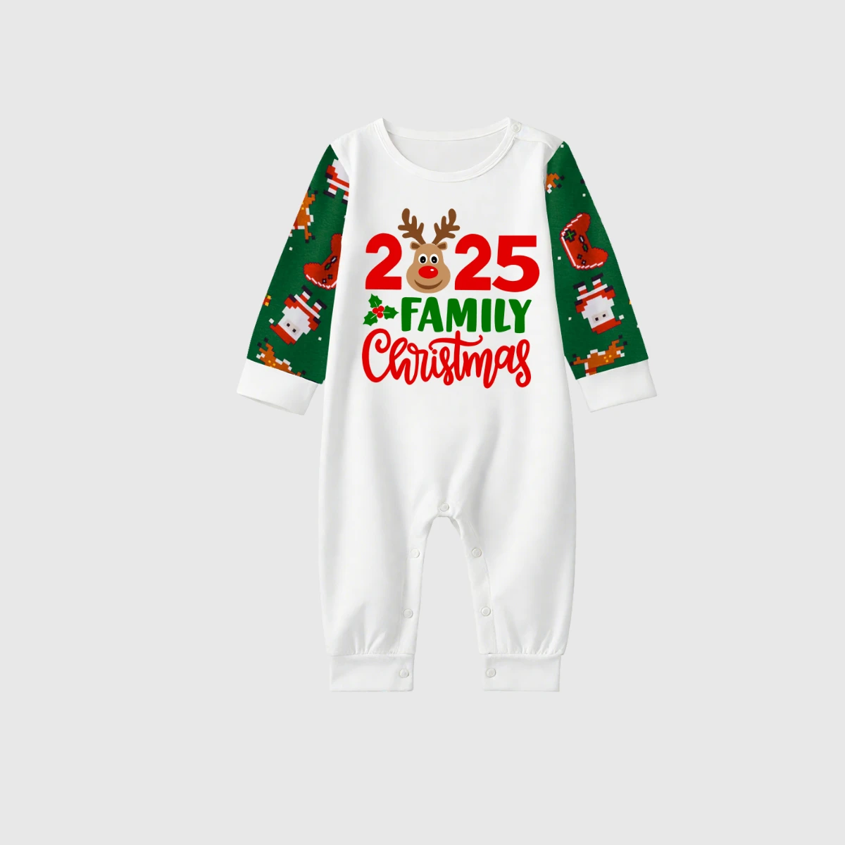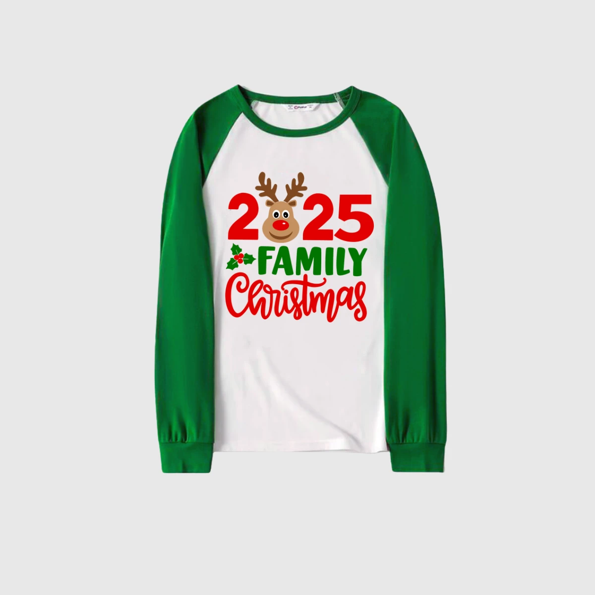 2025 Family Christmas Pajamas Set- Green Sleeves with Santa Pattern Pants