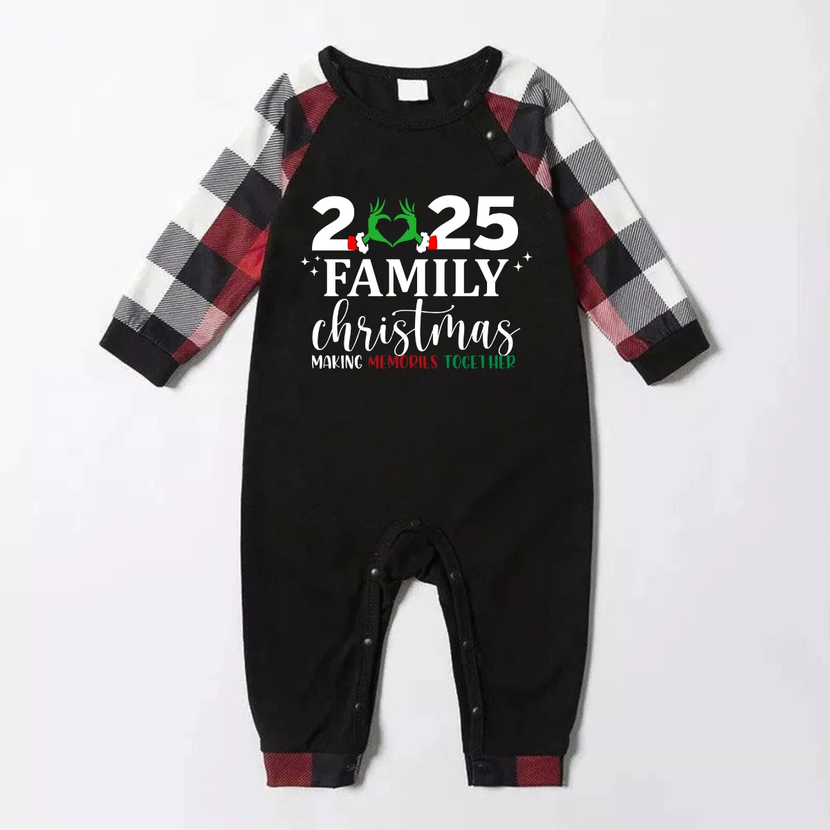 "2025 Family Christmas" Quirky Heart Letter Print Red & Black & Grey & White Plaid Family Matching Pajamas
