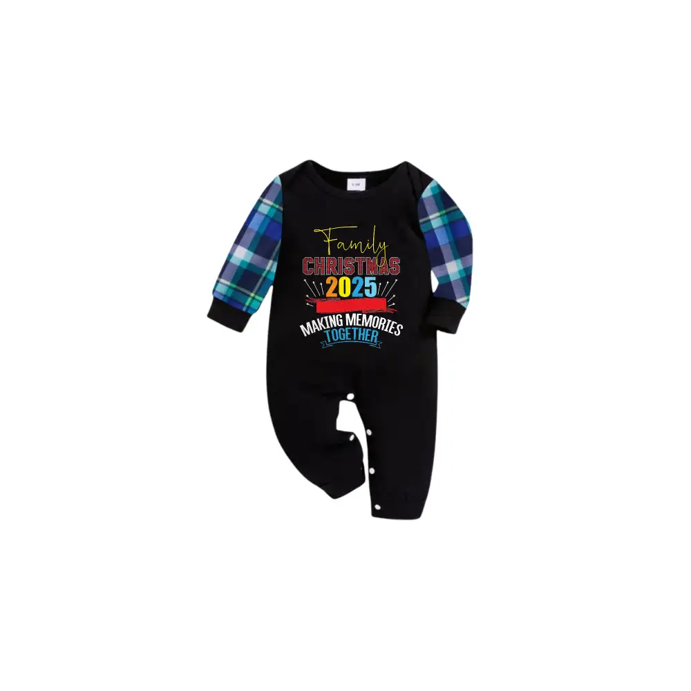 Blue and Green Plaid Christmas Pajamas Set With "Family Christmas 2025 Making Memories Together" Colorful Print