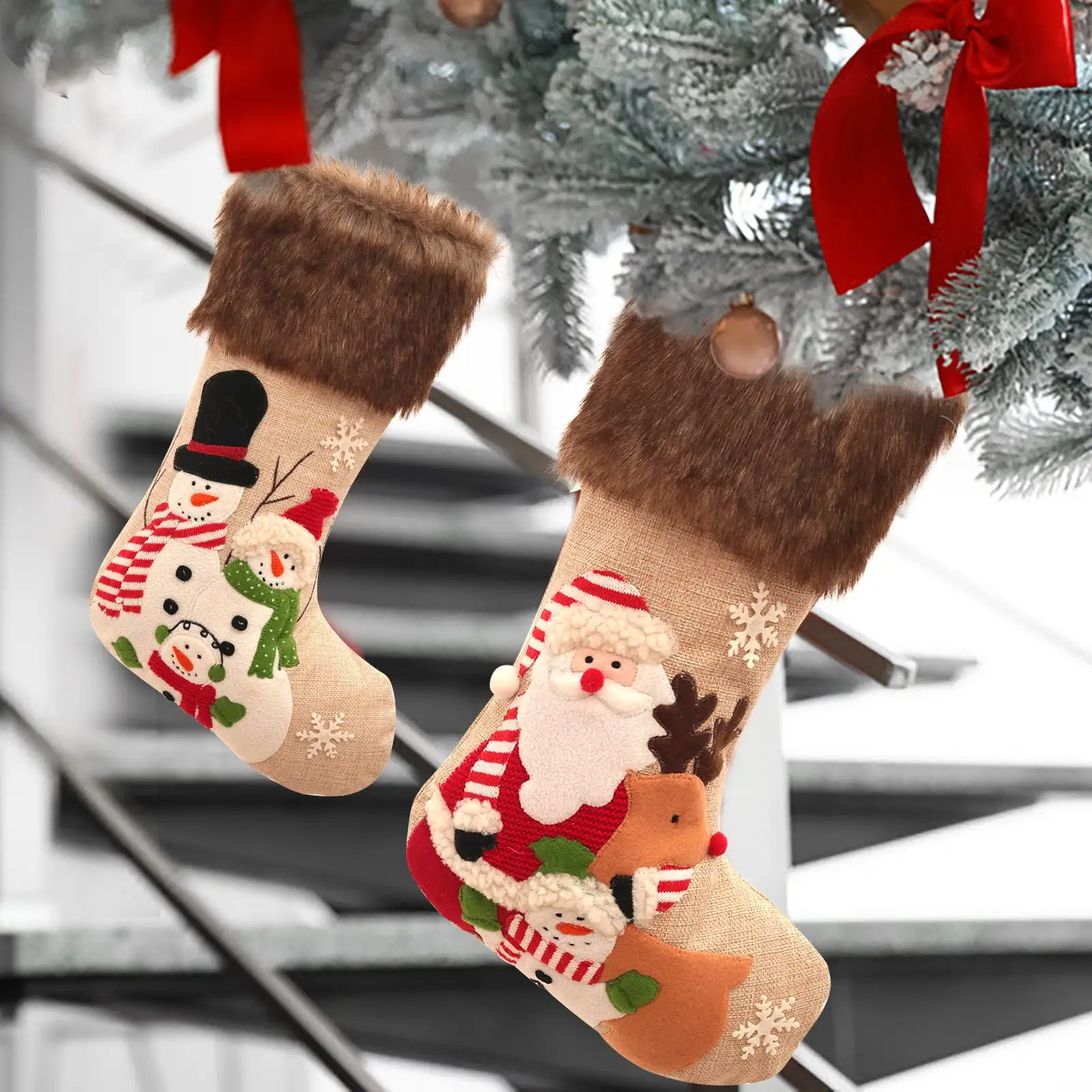 Christmas Tree Ornaments Santa Snowman Penguin Reindeer Linen Christmas Socks Candy Gift Bags