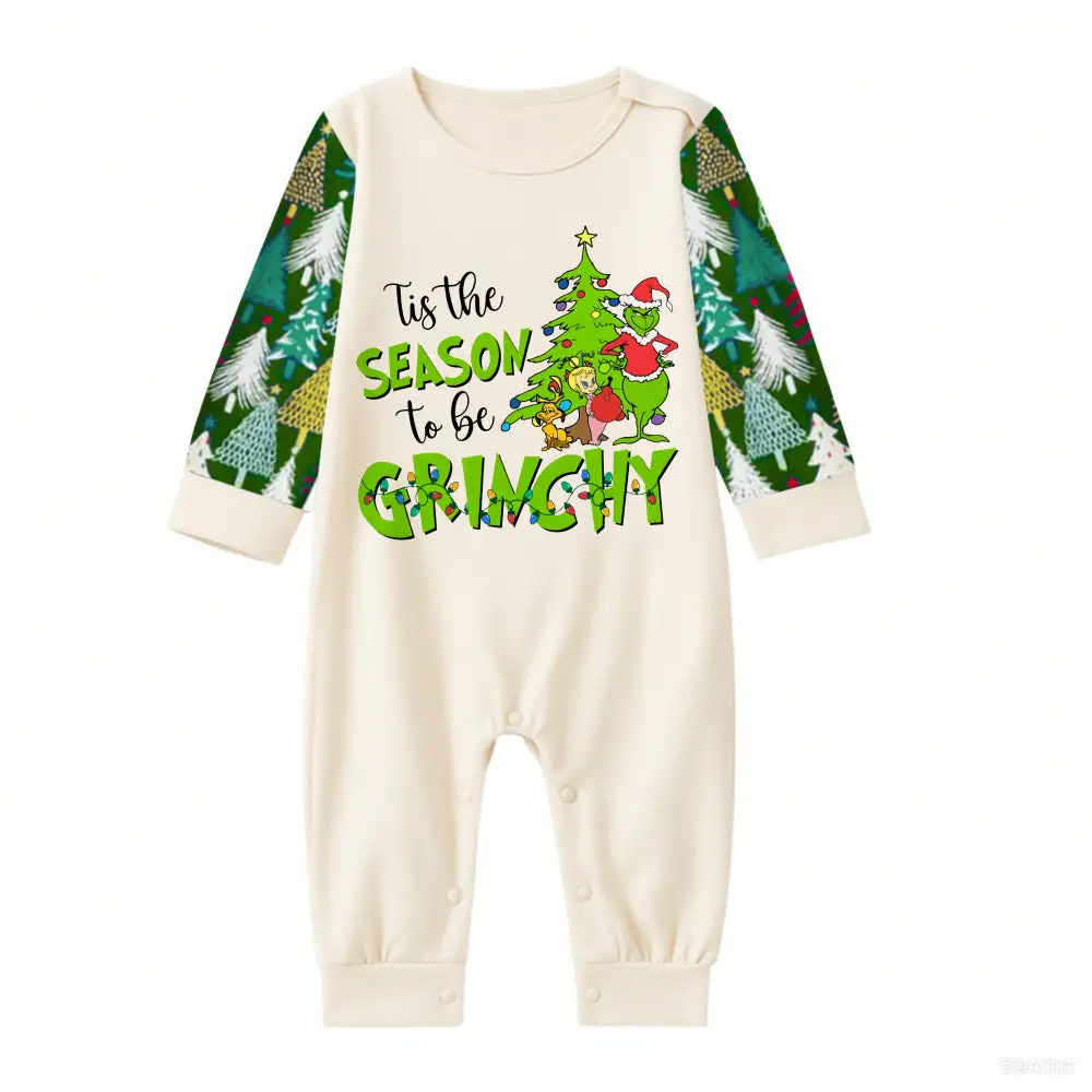 Family Christmas Pajamas Set With Grinch and Holiday Text Print